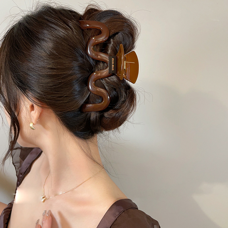 • 다크 브라운 아크릴 웨이브 그립 클립