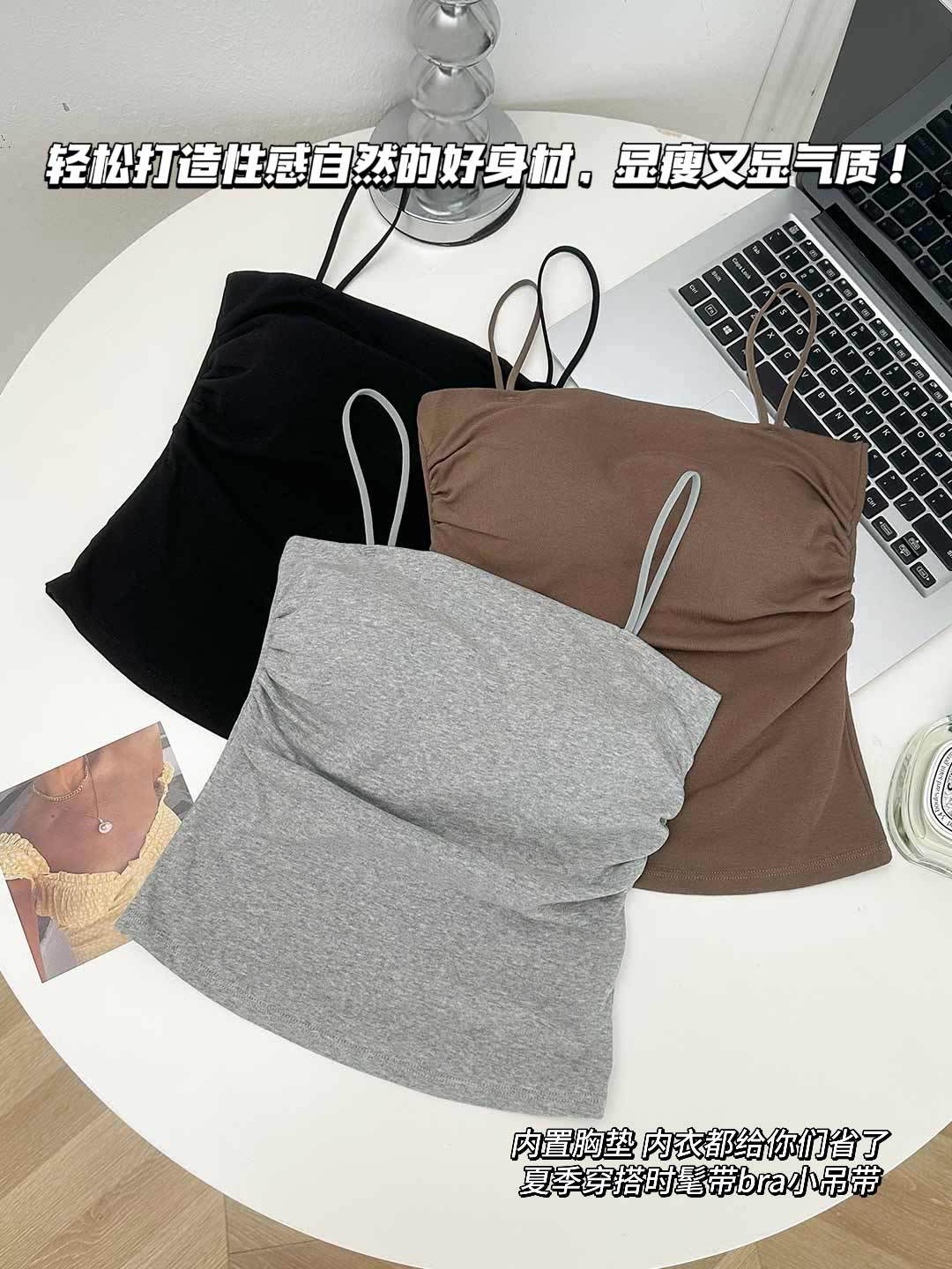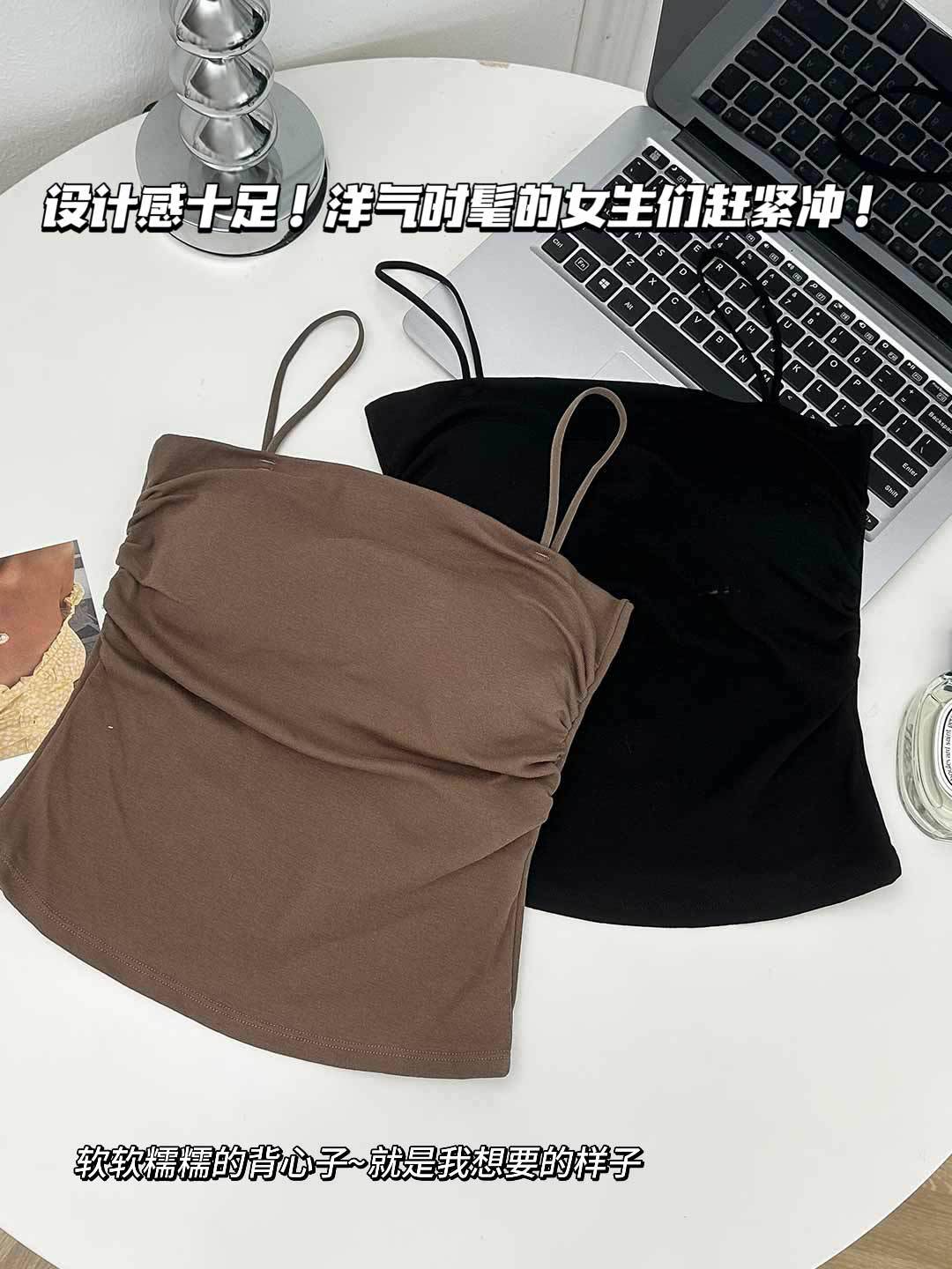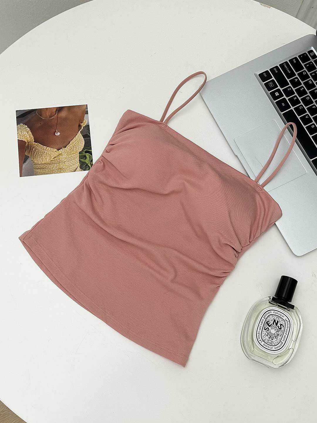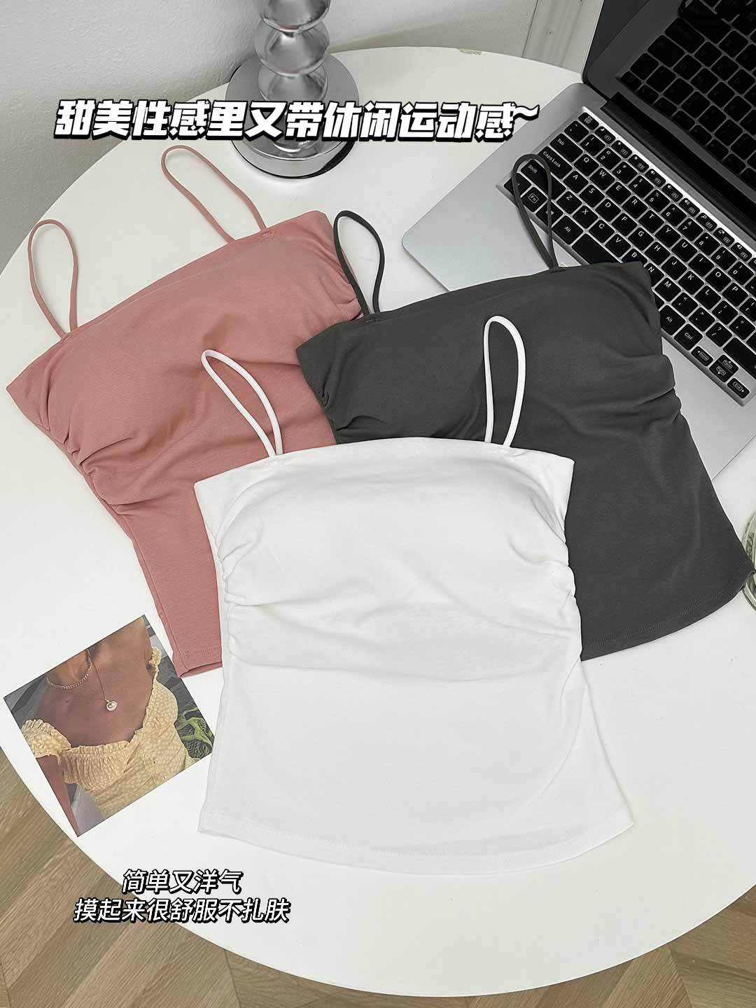 새로운 도착 Pleated Camisole 여성용 내부 슬림 사이드 핏 아름다운 등 피부 친화적 인 통기성 소형 탑 (여름 가슴 패드 포함)스토어 가기