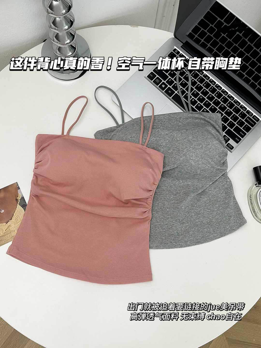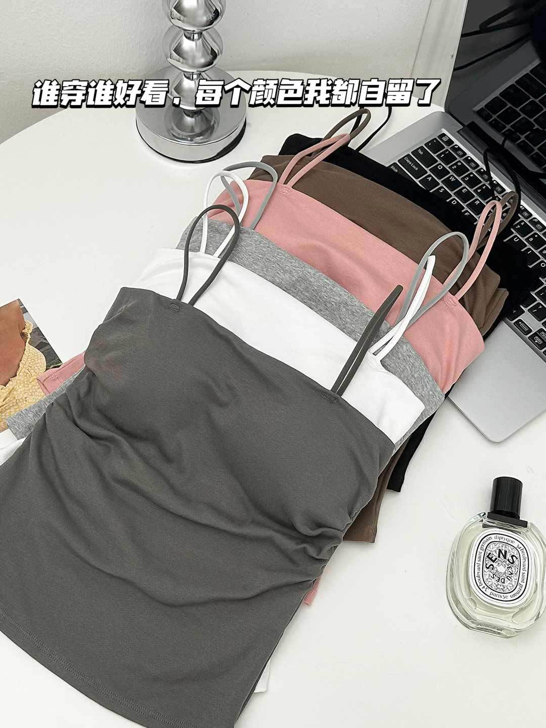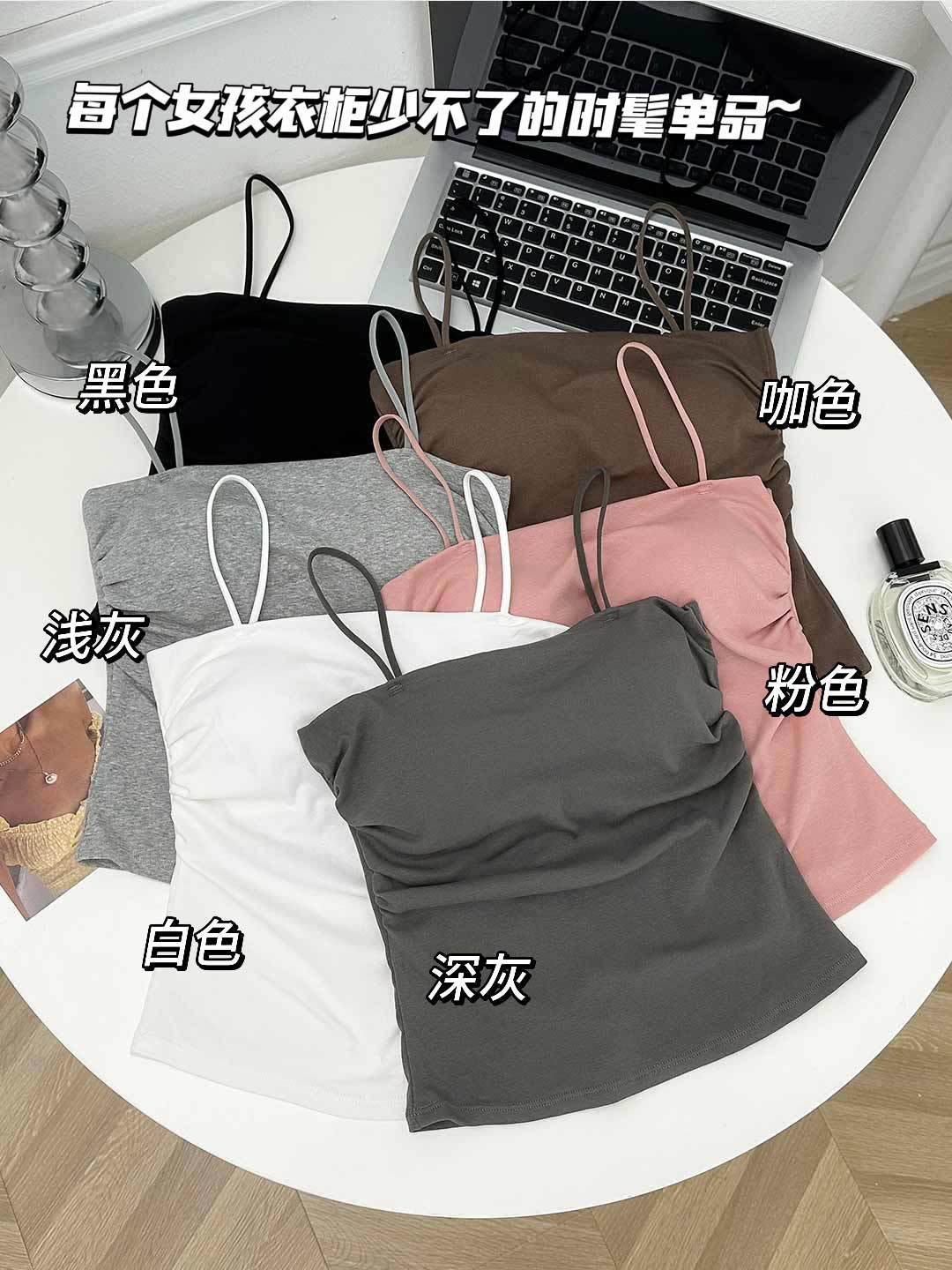 새로운 도착 Pleated Camisole 여성용 내부 슬림 사이드 핏 아름다운 등 피부 친화적 인 통기성 소형 탑 (여름 가슴 패드 포함)스토어 가기