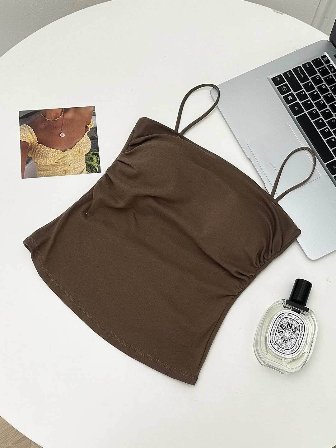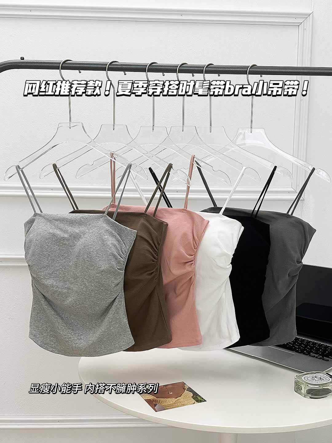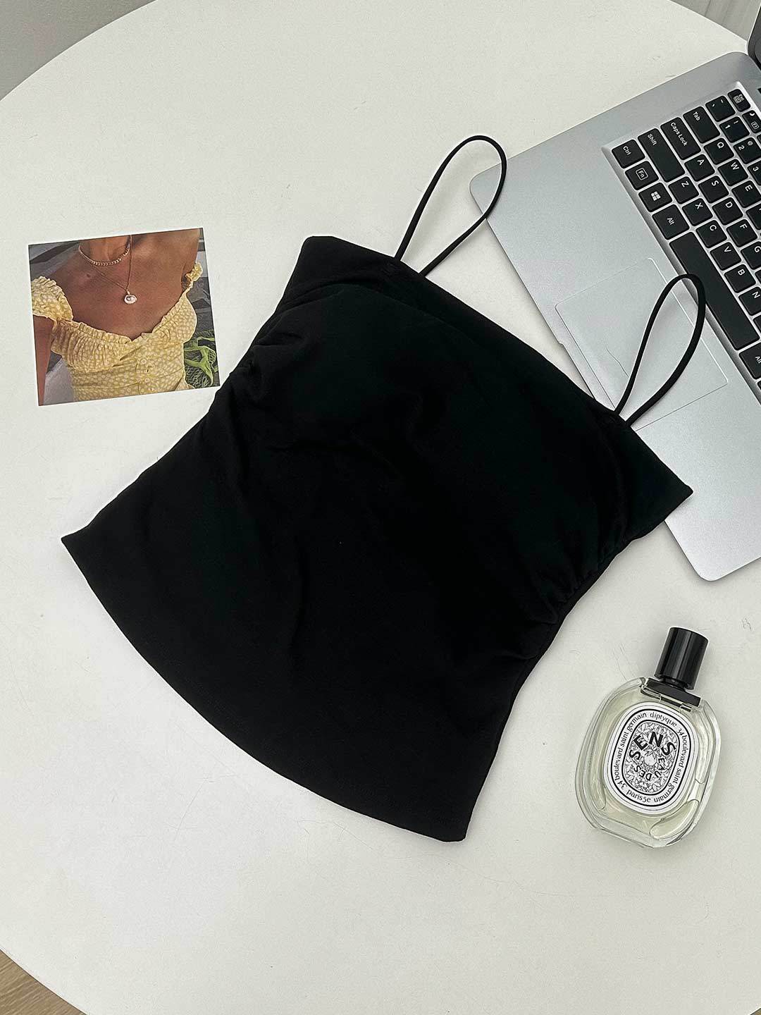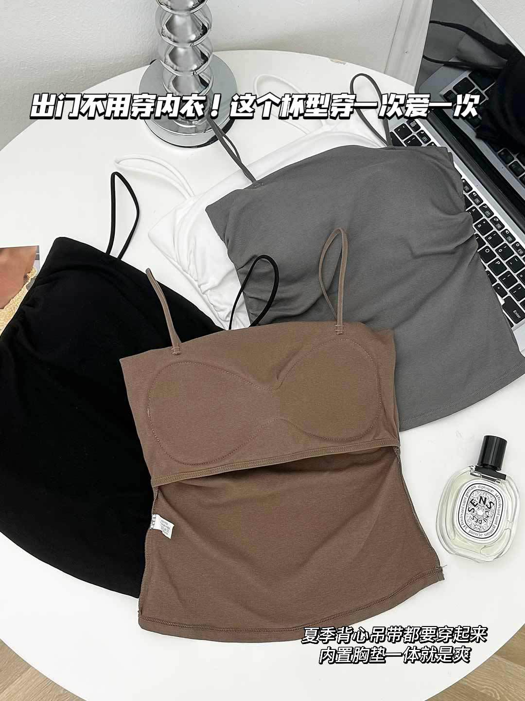 새로운 도착 Pleated Camisole 여성용 내부 슬림 사이드 핏 아름다운 등 피부 친화적 인 통기성 소형 탑 (여름 가슴 패드 포함)스토어 가기