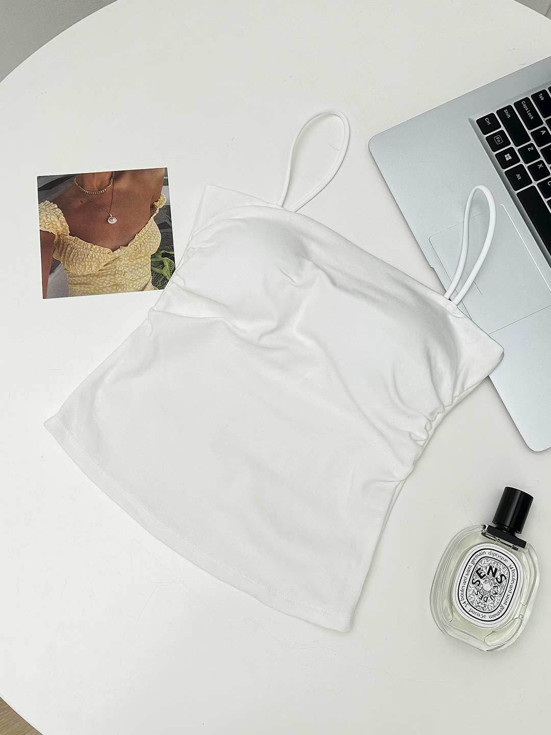 새로운 도착 Pleated Camisole 여성용 내부 슬림 사이드 핏 아름다운 등 피부 친화적 인 통기성 소형 탑 (여름 가슴 패드 포함)