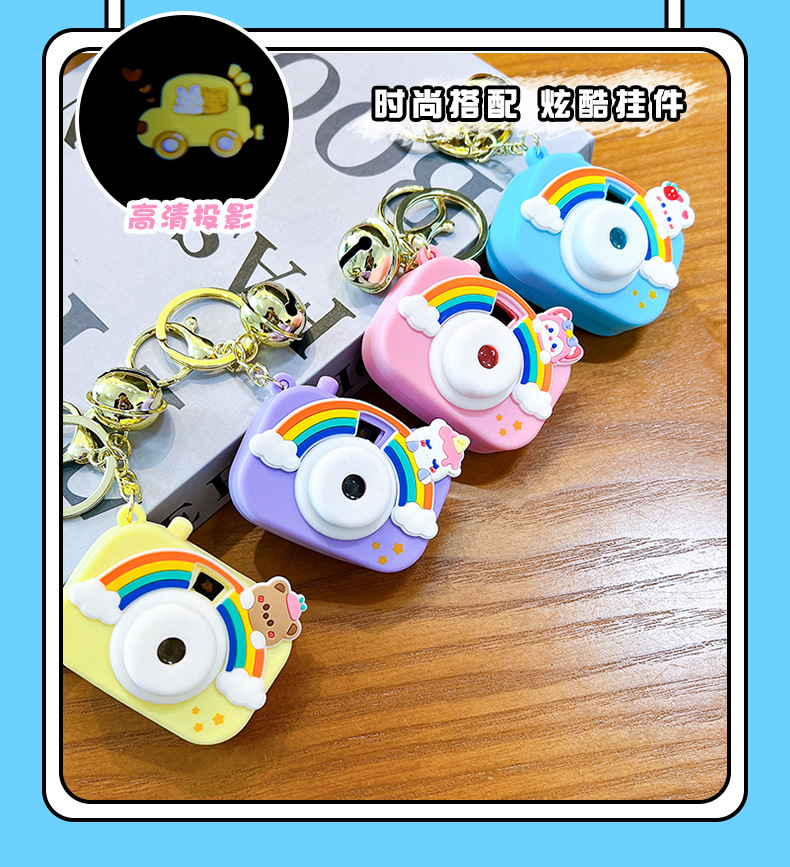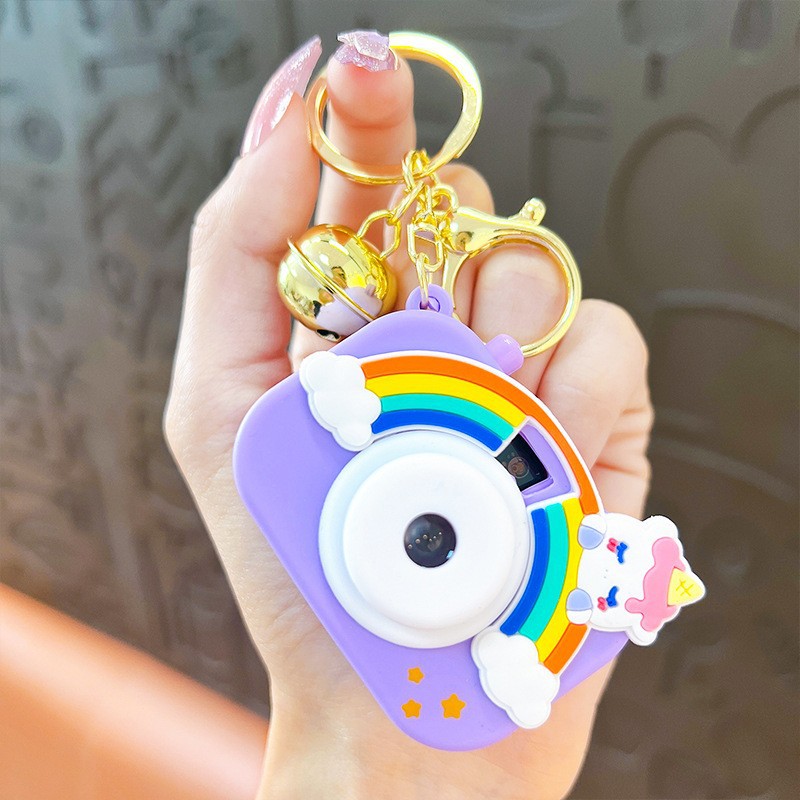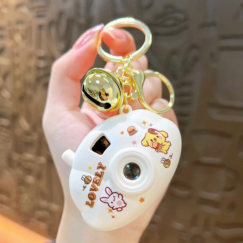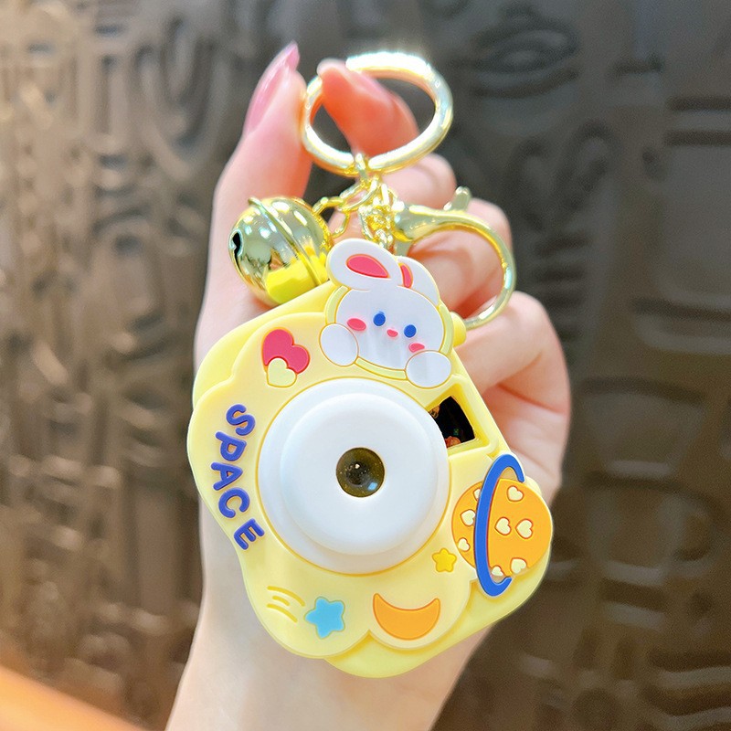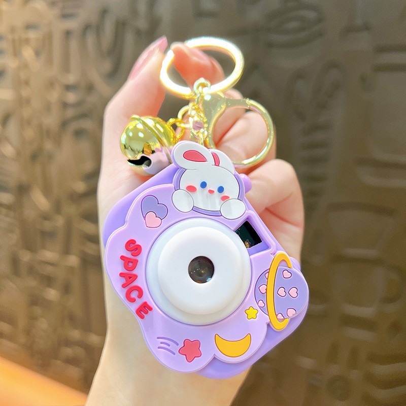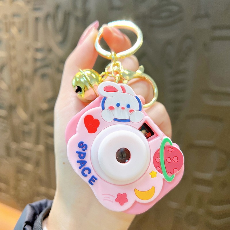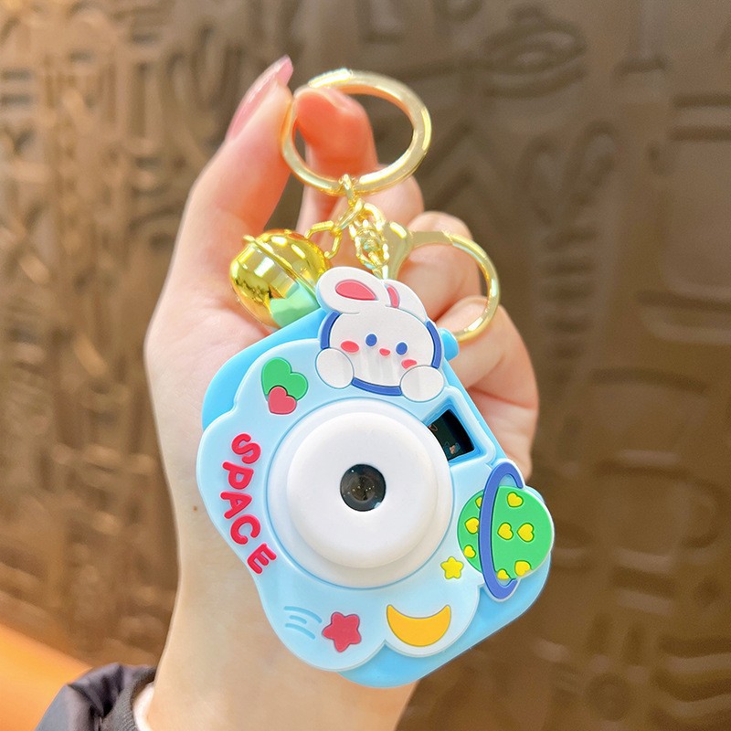 만화 창조적 인 프로젝션 카메라 키 체인 펜던트 빛나는 작은 카메라 가방 액세서리 인형 기계 공급 작은 선물