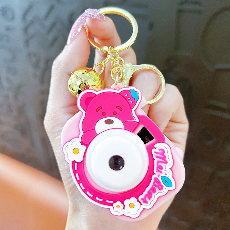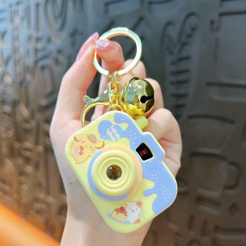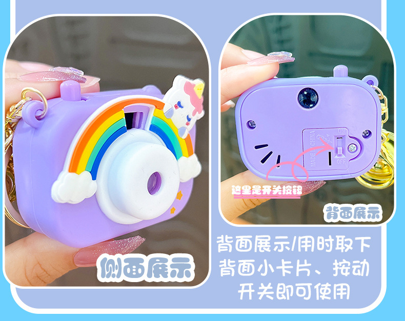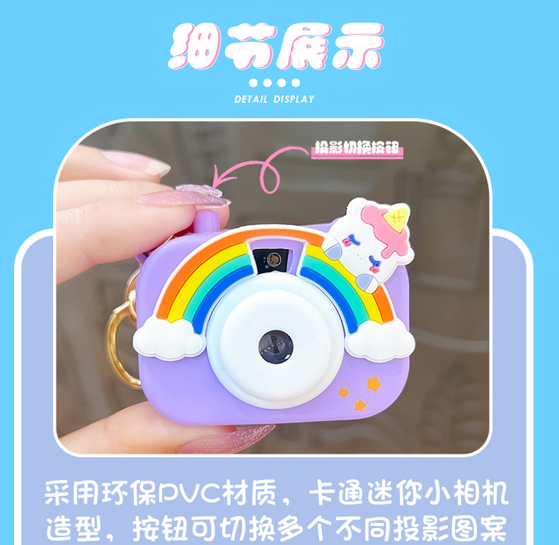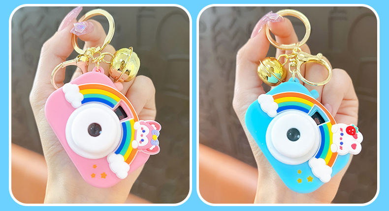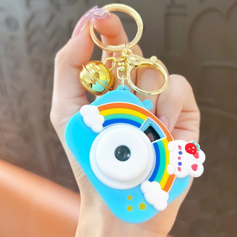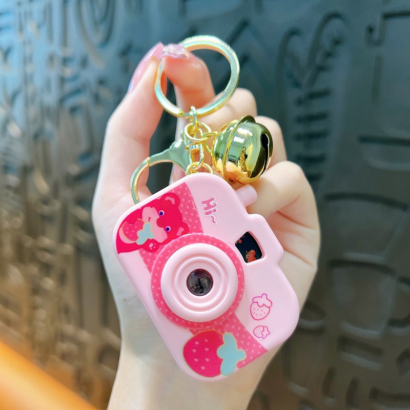 만화 창조적 인 프로젝션 카메라 키 체인 펜던트 빛나는 작은 카메라 가방 액세서리 인형 기계 공급 작은 선물
