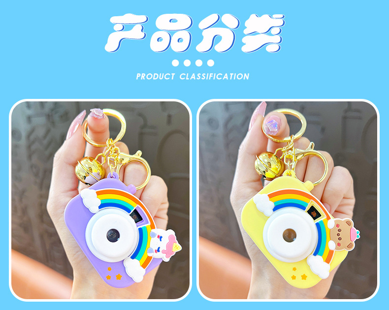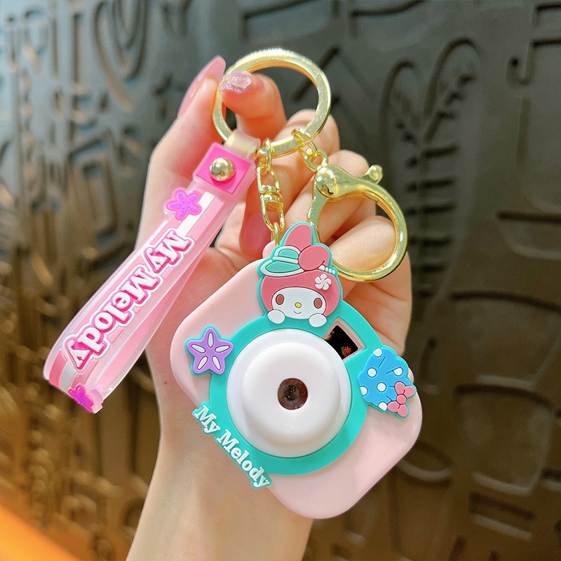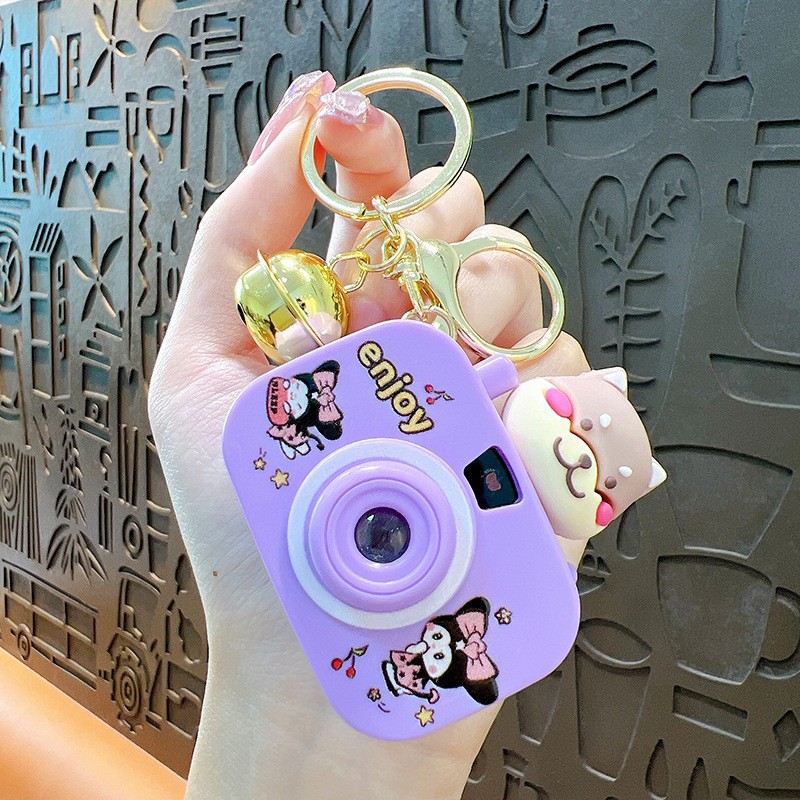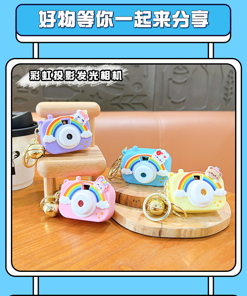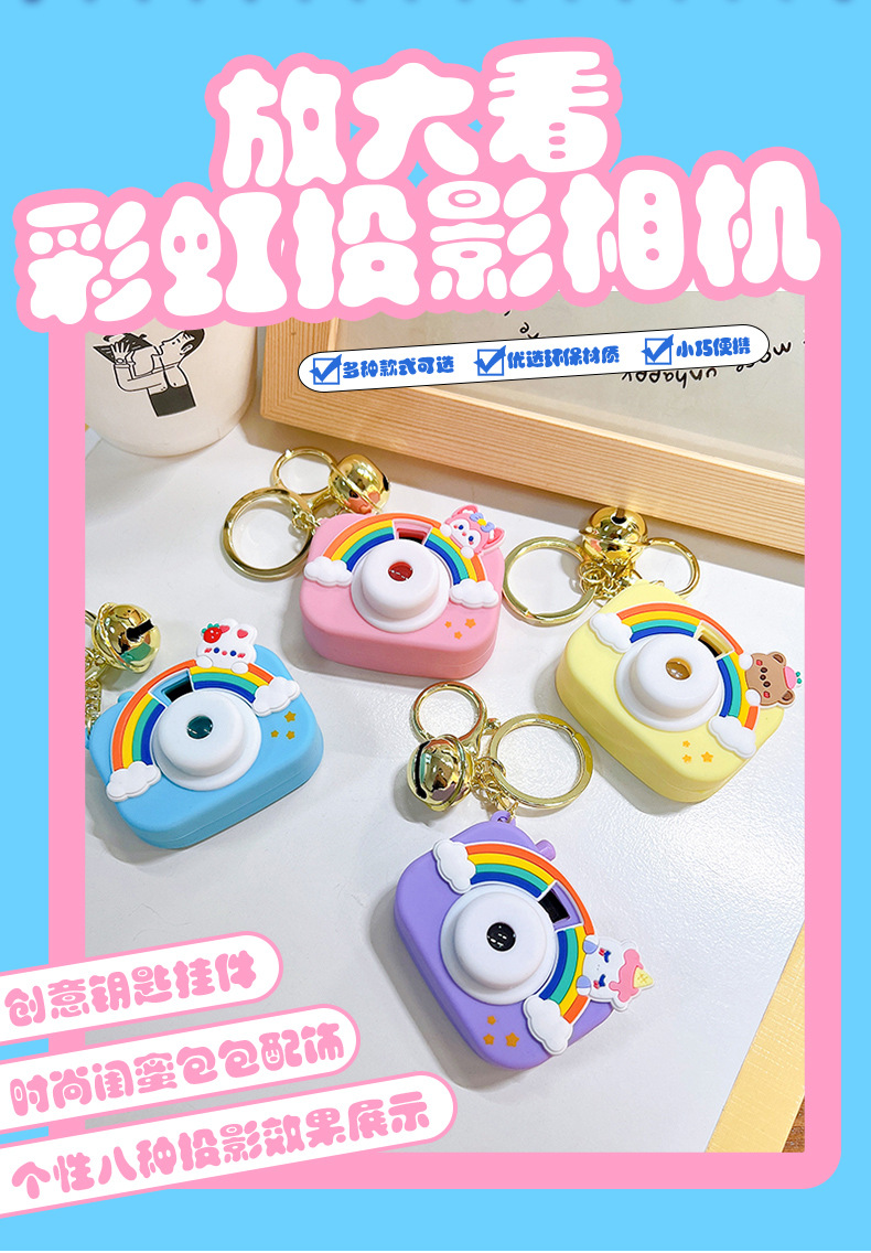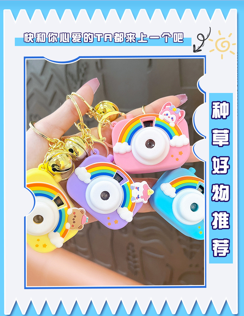 만화 창조적 인 프로젝션 카메라 키 체인 펜던트 빛나는 작은 카메라 가방 액세서리 인형 기계 공급 작은 선물