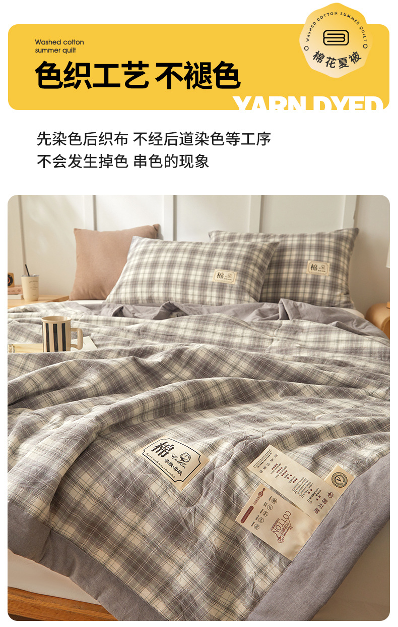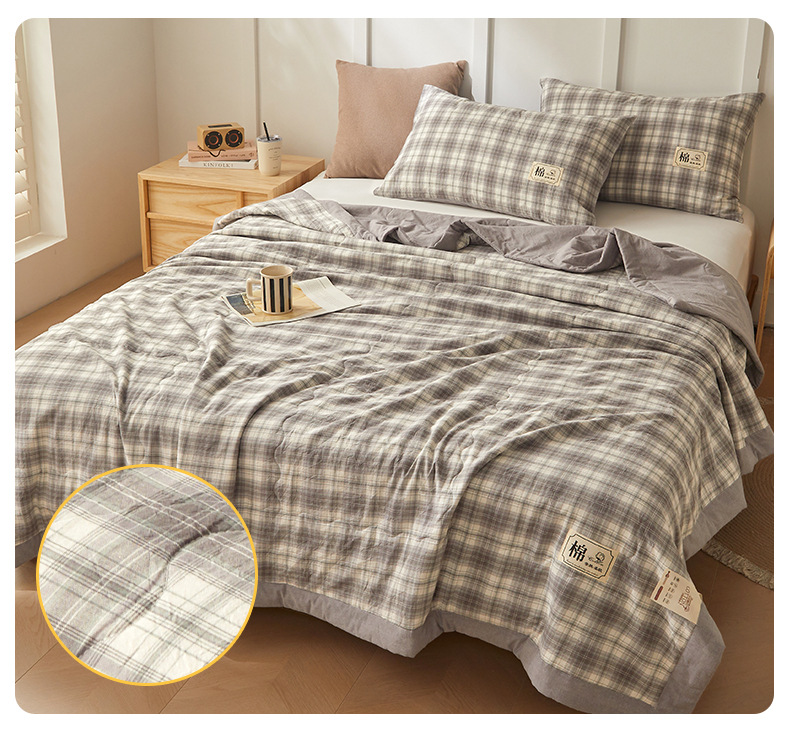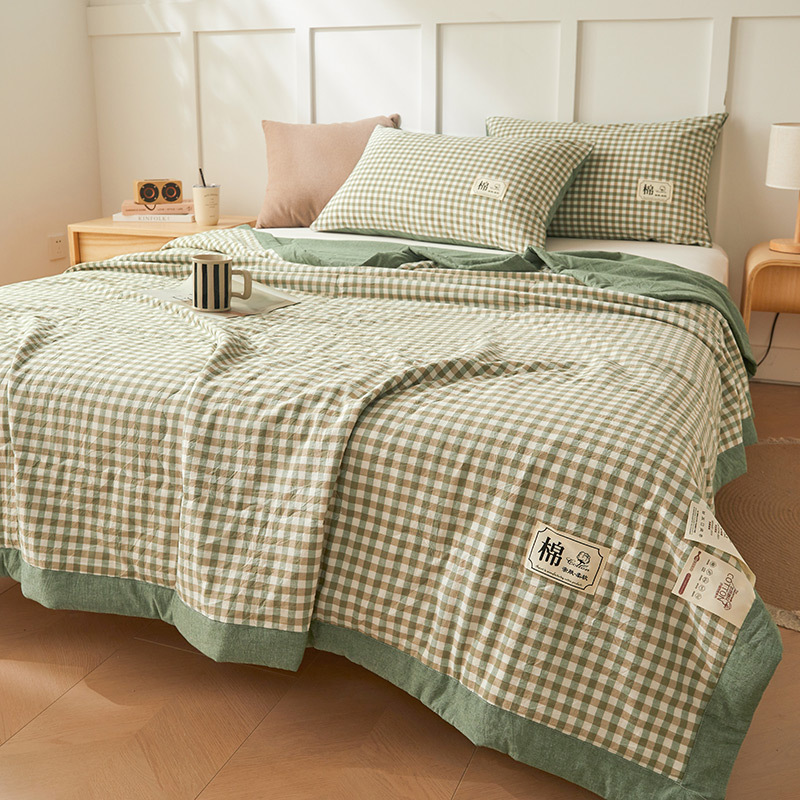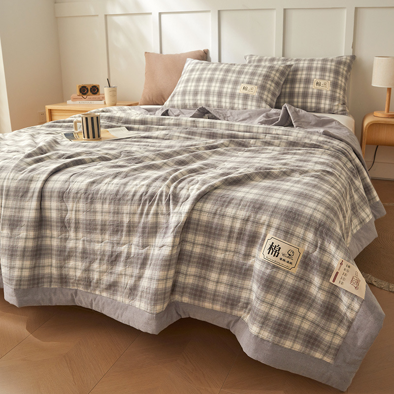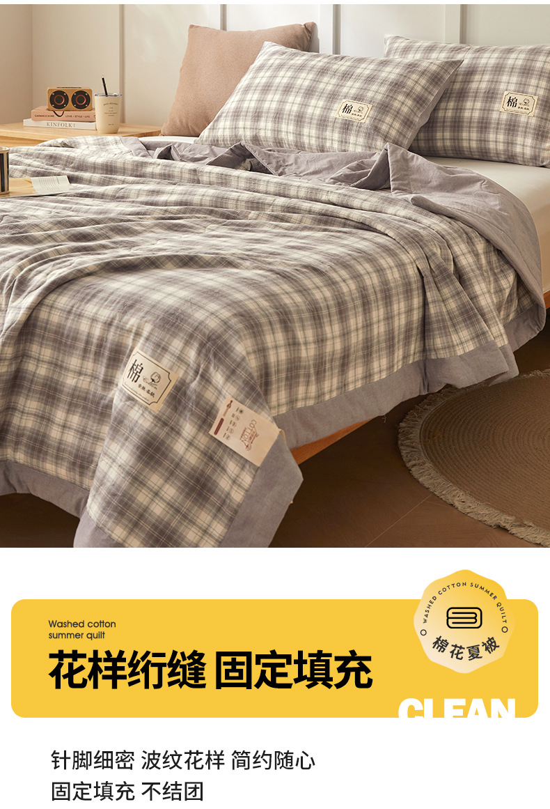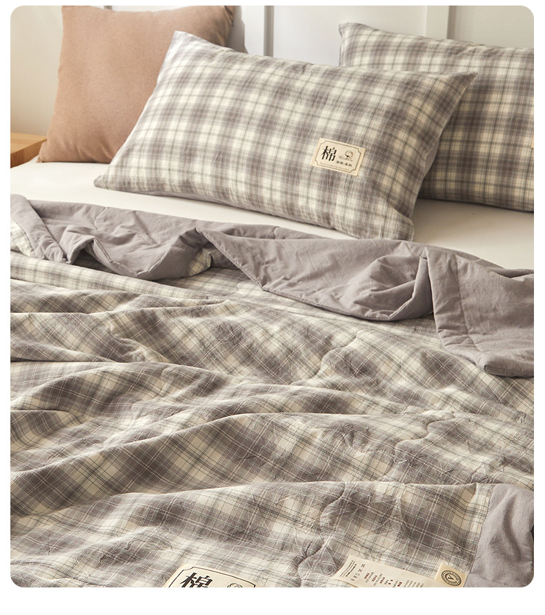 면 충전 여름 이불 단색 격자무늬 여름 시원한 이불 가정용 싱글/더블 에어컨 이불 통기성 가볍고 편안한