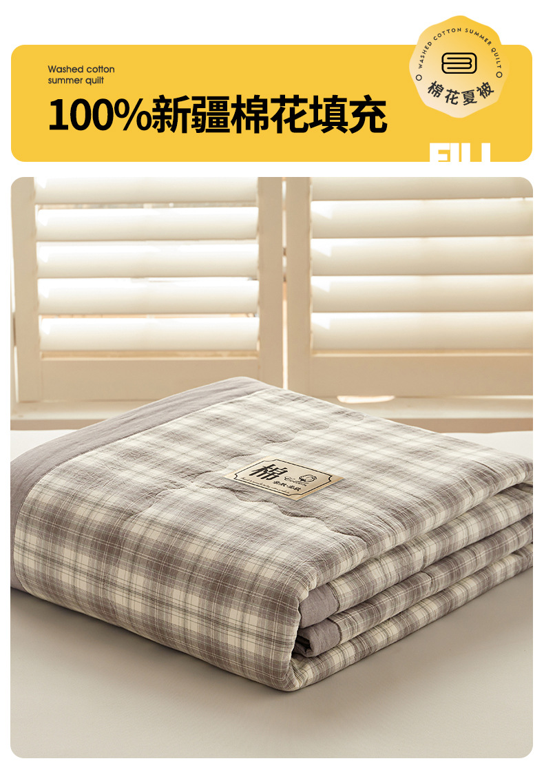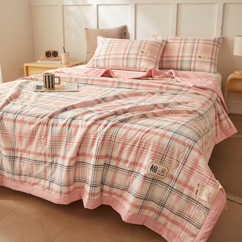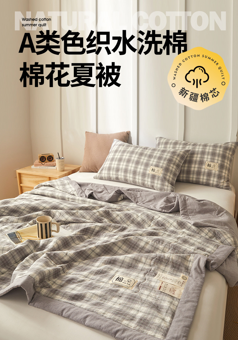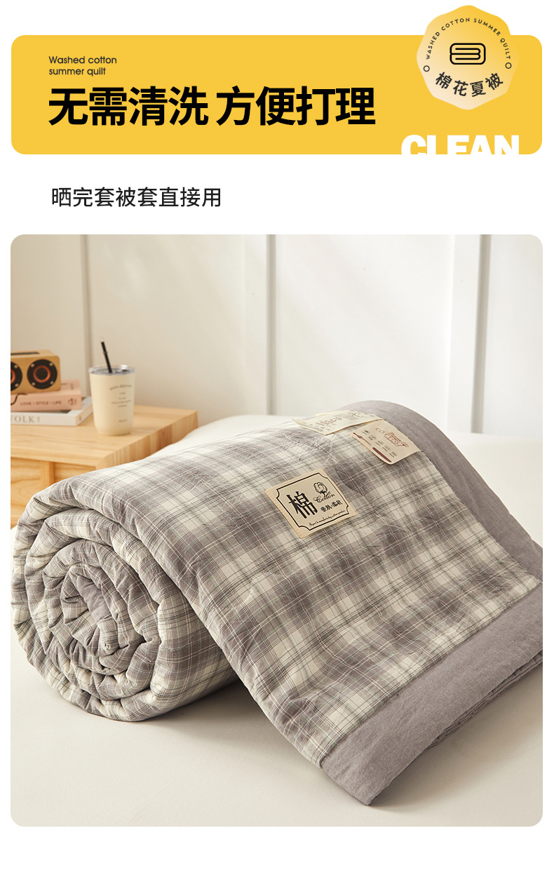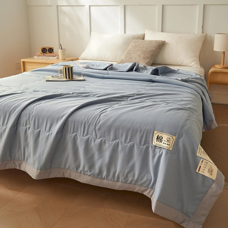 면 충전 여름 이불 단색 격자무늬 여름 시원한 이불 가정용 싱글/더블 에어컨 이불 통기성 가볍고 편안한