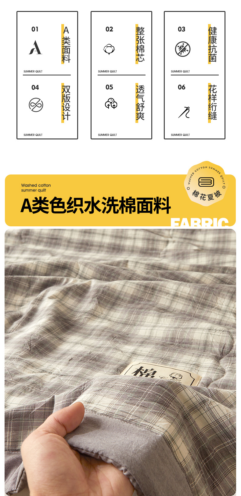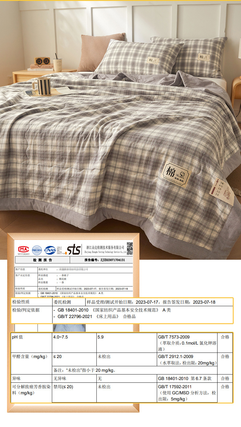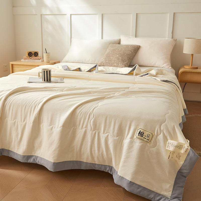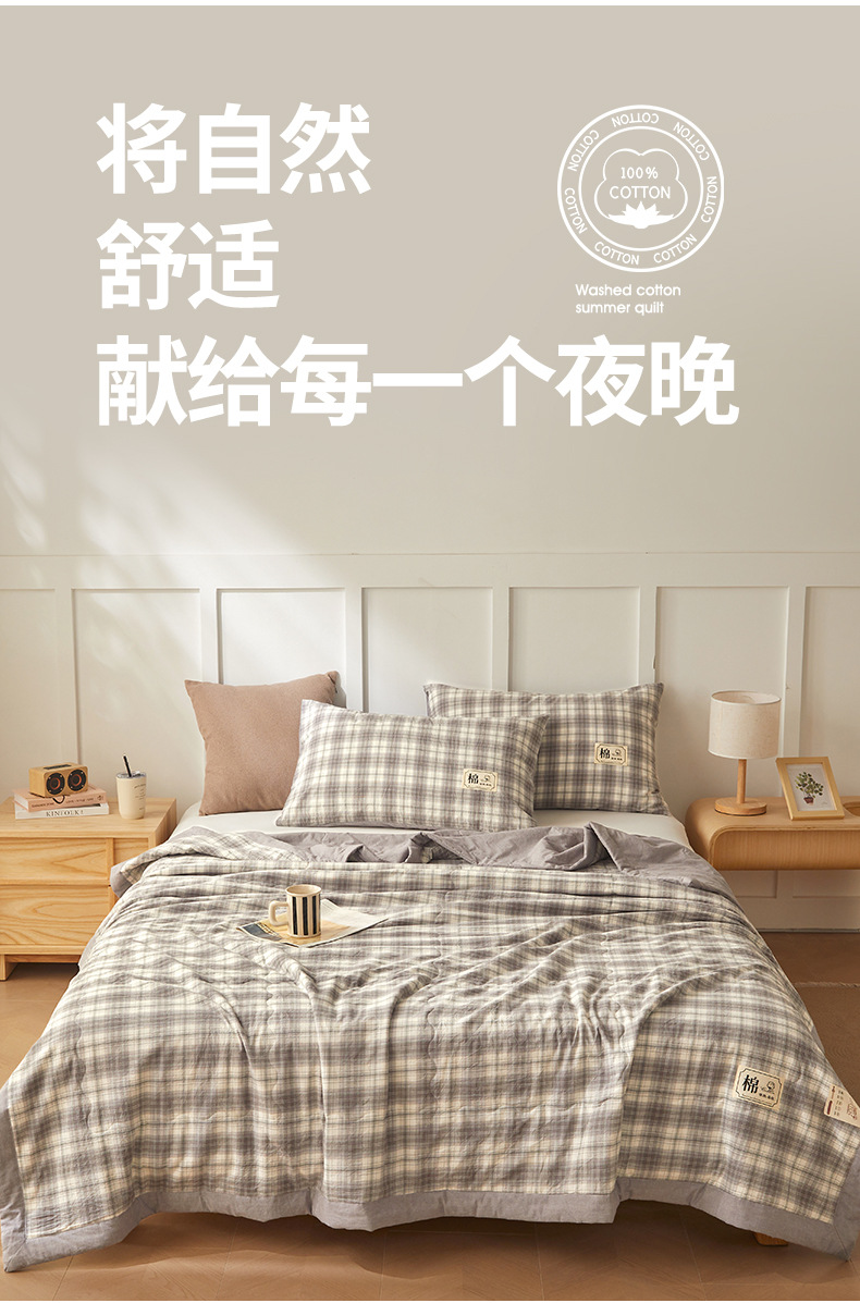 면 충전 여름 이불 단색 격자무늬 여름 시원한 이불 가정용 싱글/더블 에어컨 이불 통기성 가볍고 편안한