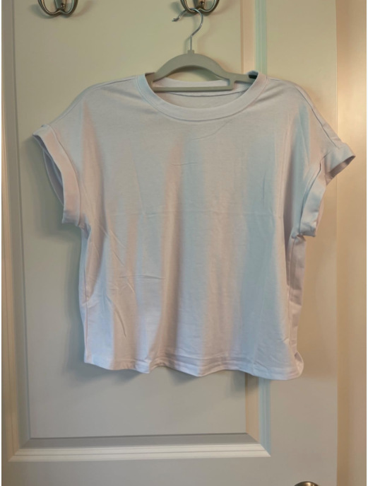 2024 여성용 반팔 티셔츠 어깨 크루 넥 배벨 탑 캐주얼 여름 솔리드 컬러 기본 티셔츠스토어 가기