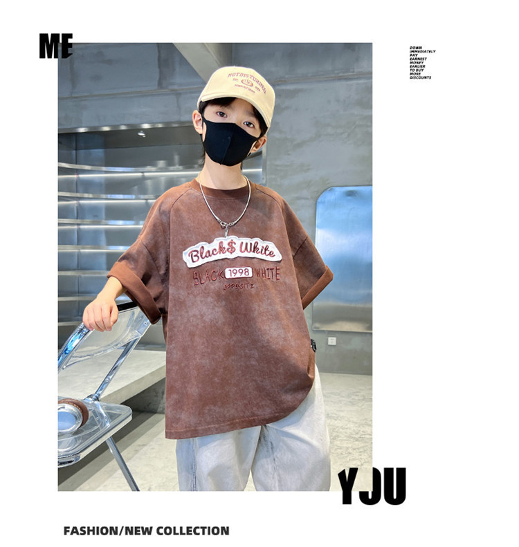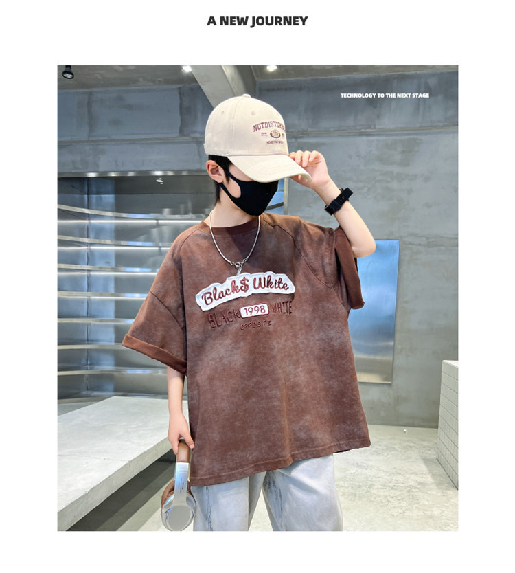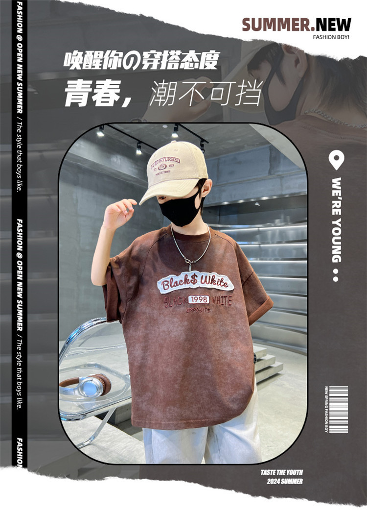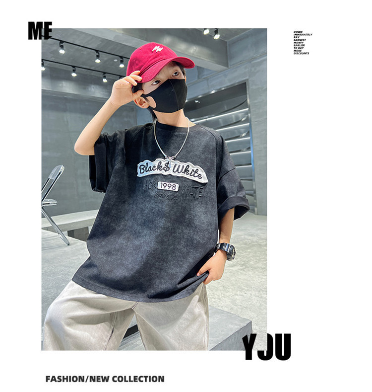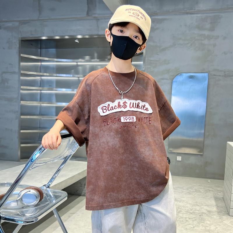 어린이 의류 소년 티셔츠 반팔 여름 2024 새로운 스타일 소년 옷 여름 중간 및 큰 어린이 면 여름 유행 T