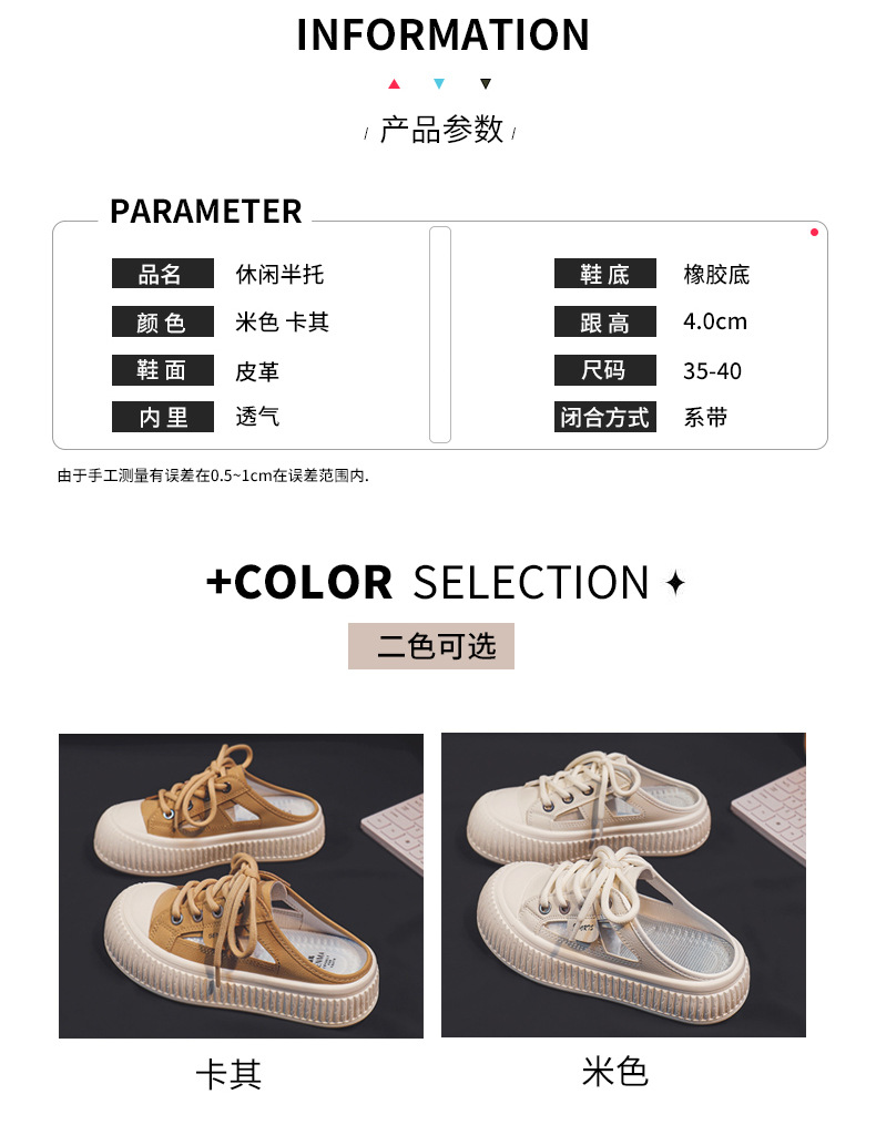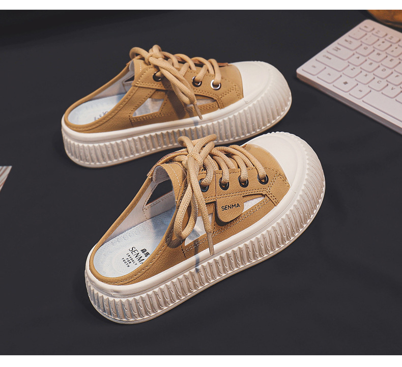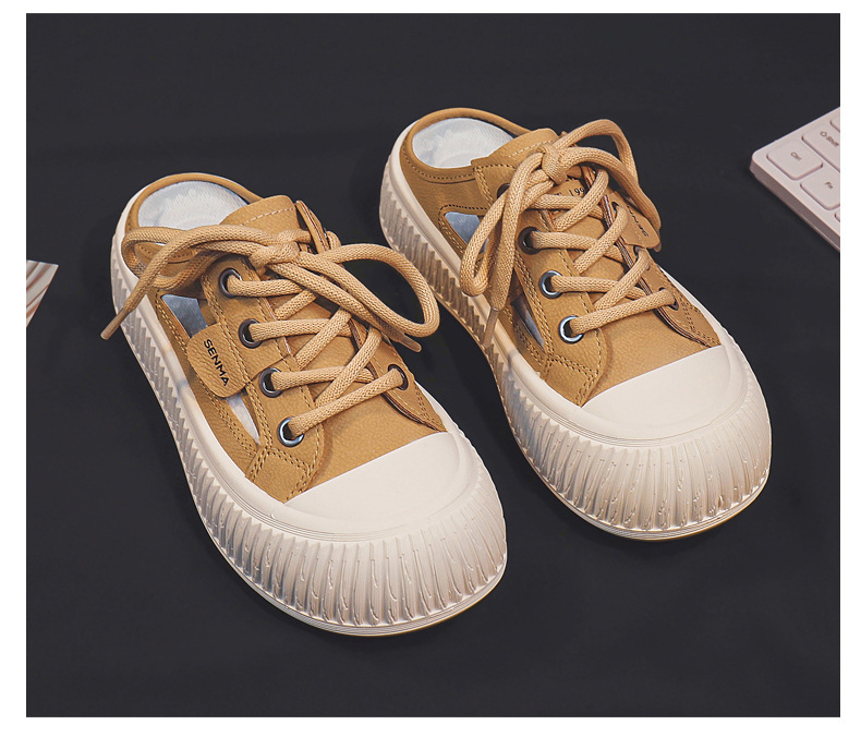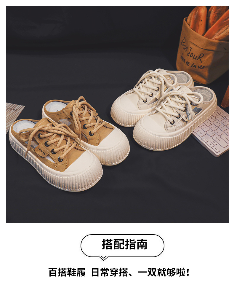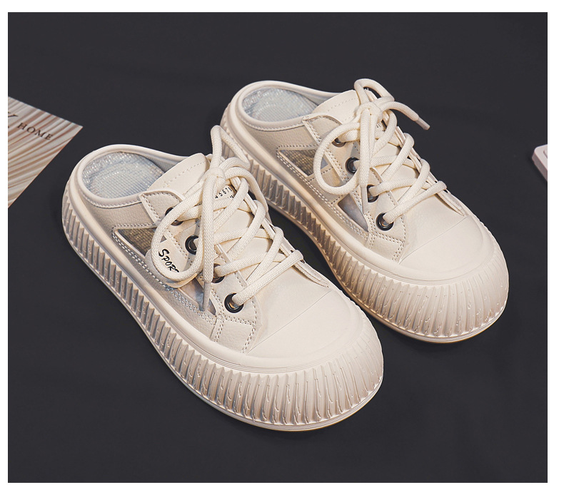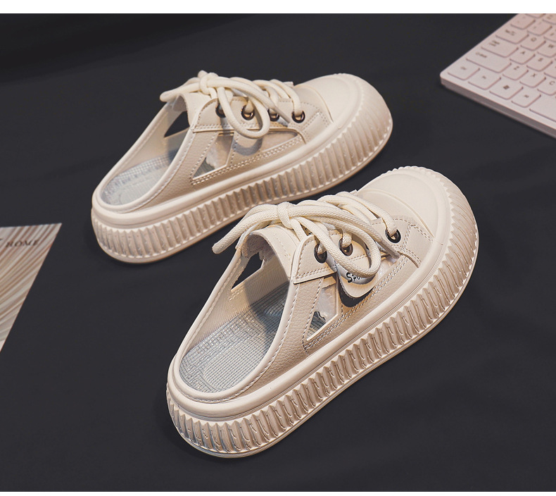 2024 여름 통기성 높이 증가 여성 신발 한국 스타일 유행 올 매치 야외 게으른 가죽 탑 하프 신발 T19스토어 가기