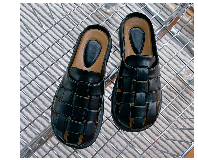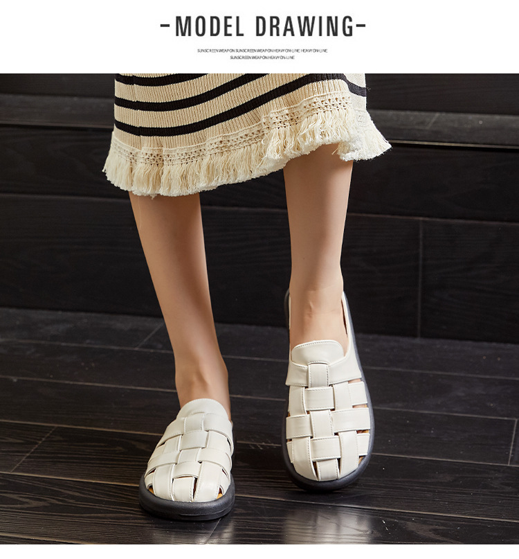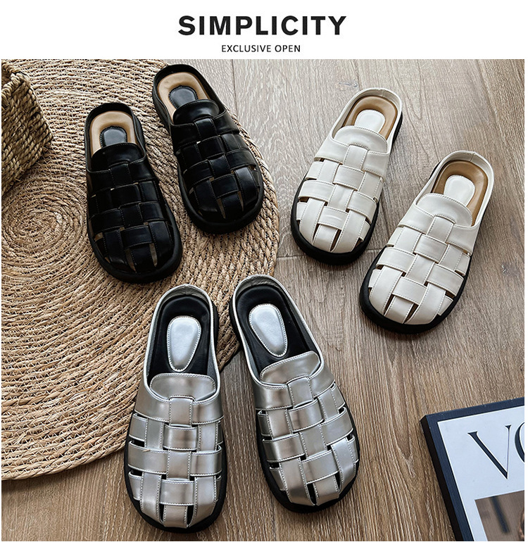 2025 새로운 여름 복고풍 짠 슬리퍼 중공 통기성 플랫 샌들 Baotou 외부 착용 하프 슬리퍼 패션 여성 신발스토어 가기