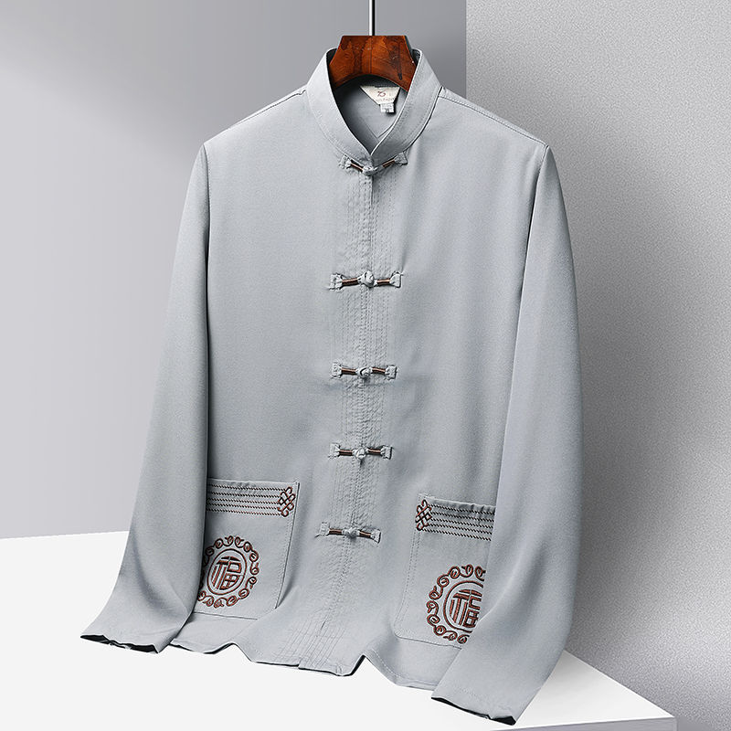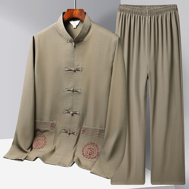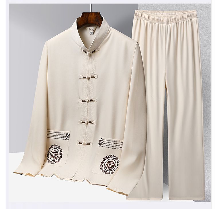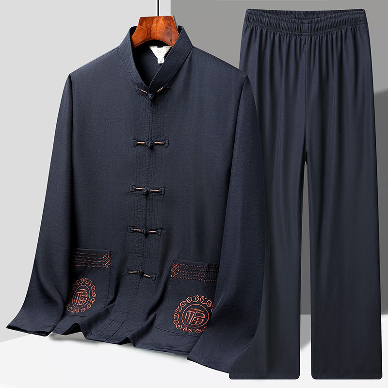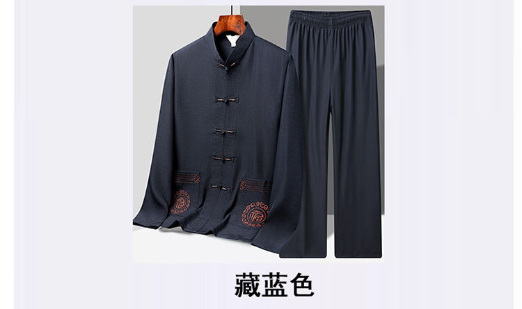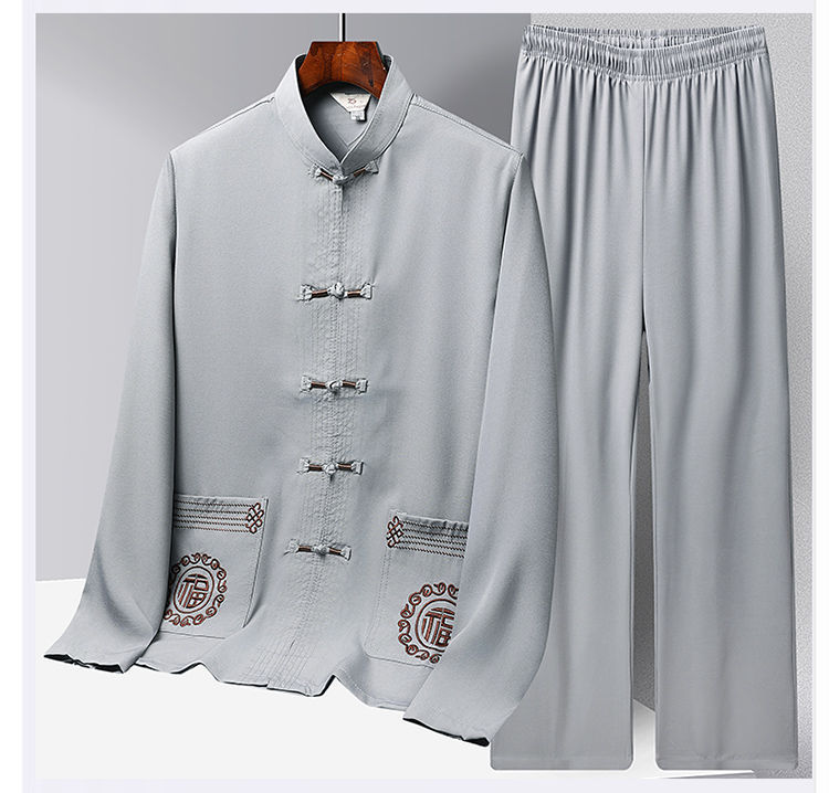 새로운 중국 스타일 봄과 여름 아이스 실크 탕 세트 남성 중년 및 노인 얇은 긴팔 아빠 세트 중국 스타일 한푸 할아버지 세트