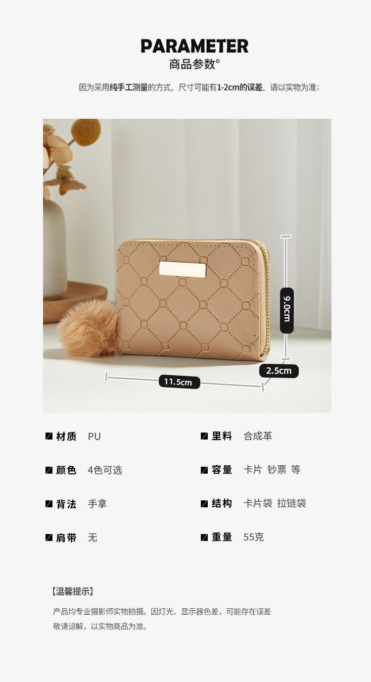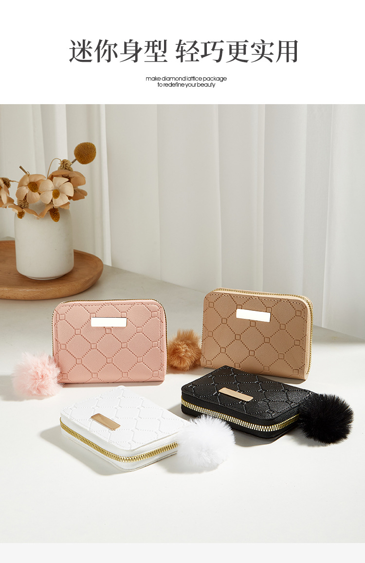 2024 신상품 다이아몬드 패턴 핸드백 패션 심플 핸드백 짧은 지퍼 패턴 여성용 동전 지갑스토어 가기