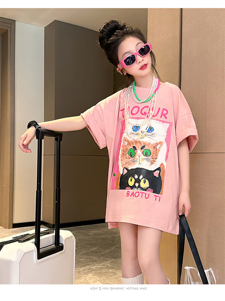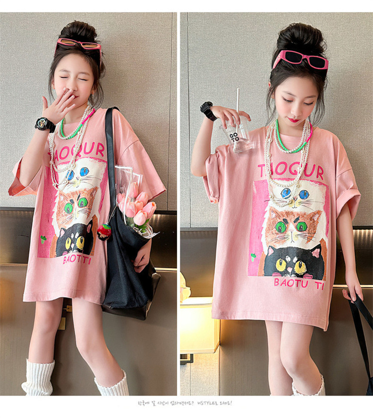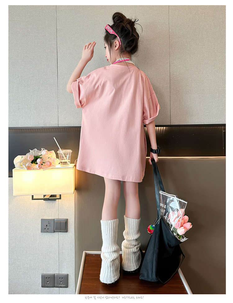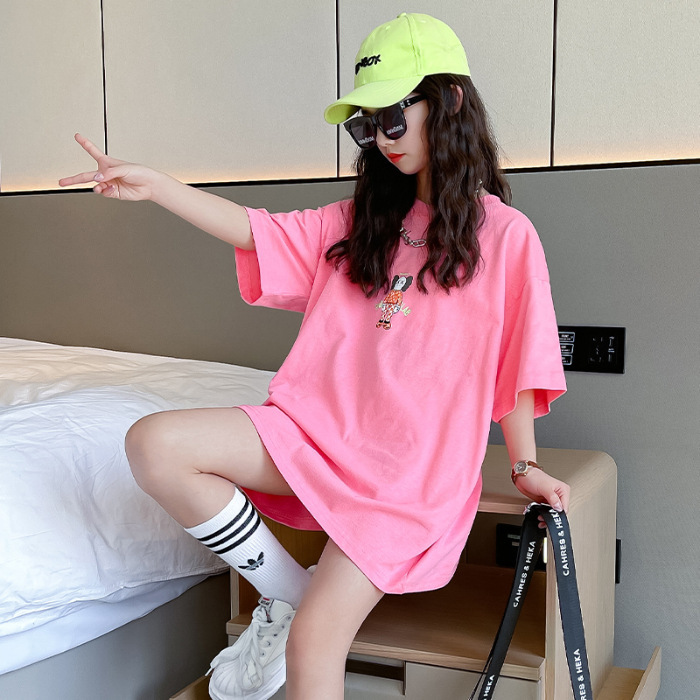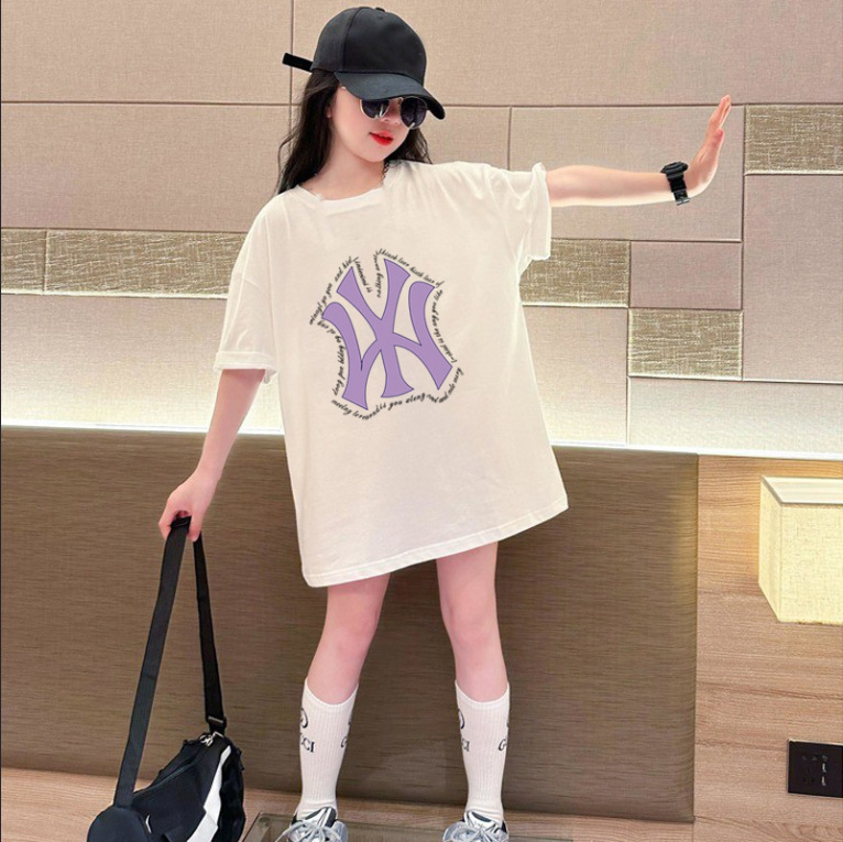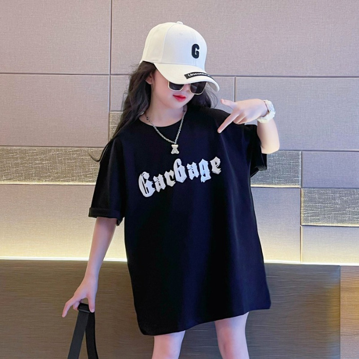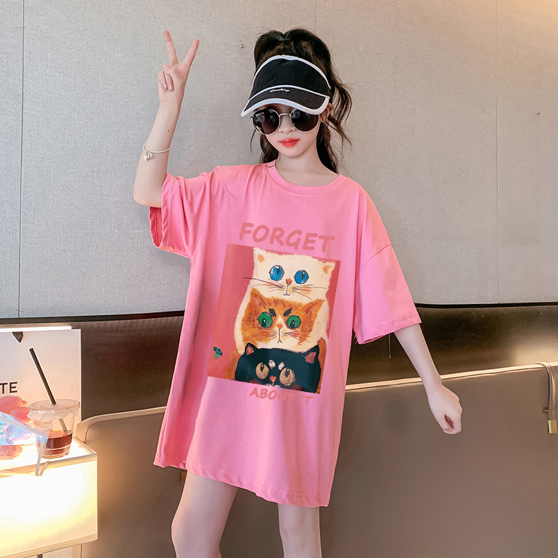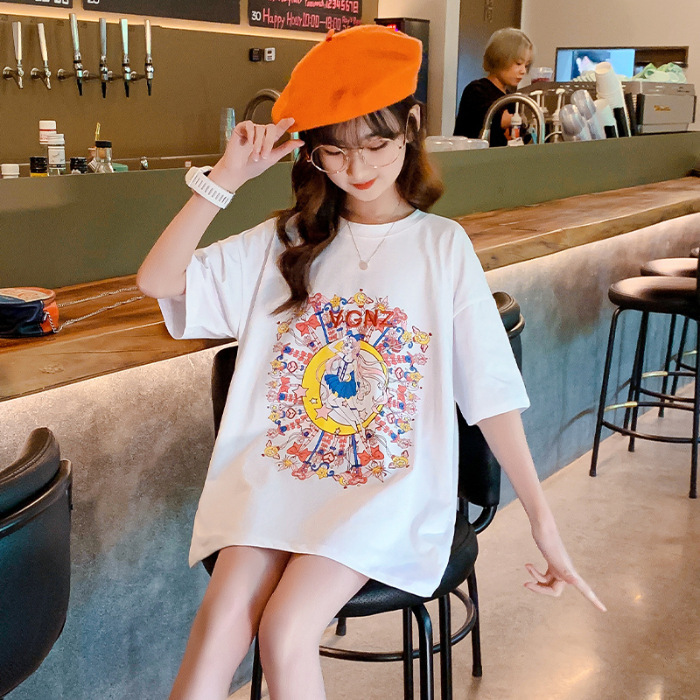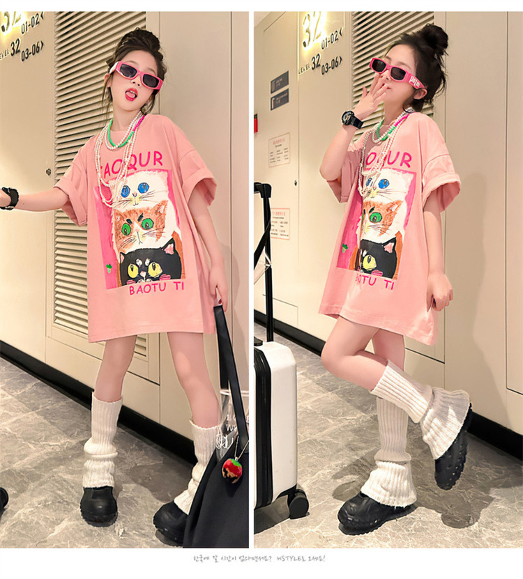 220g 여자 반팔 티셔츠 새로운 스타일 여름 큰 아이들 느슨한 여름 아이들의 긴 반소매 최고 조수