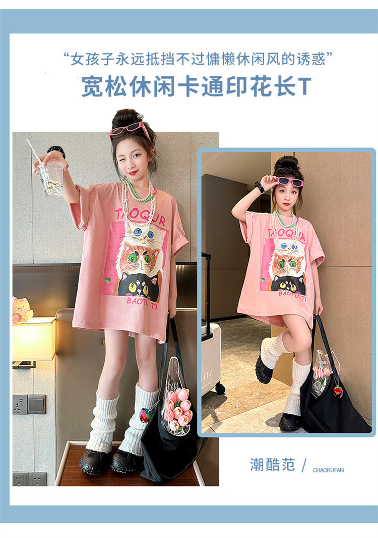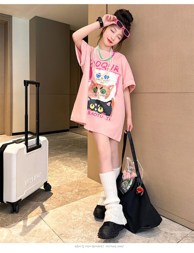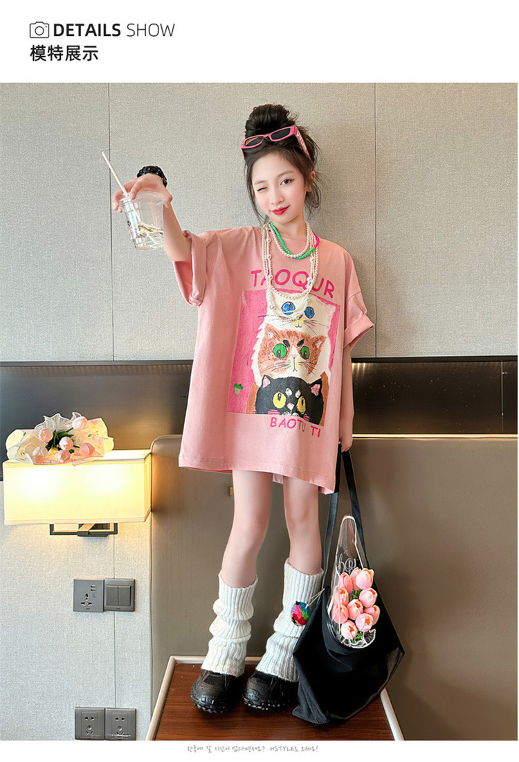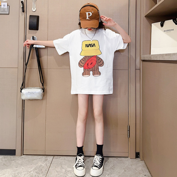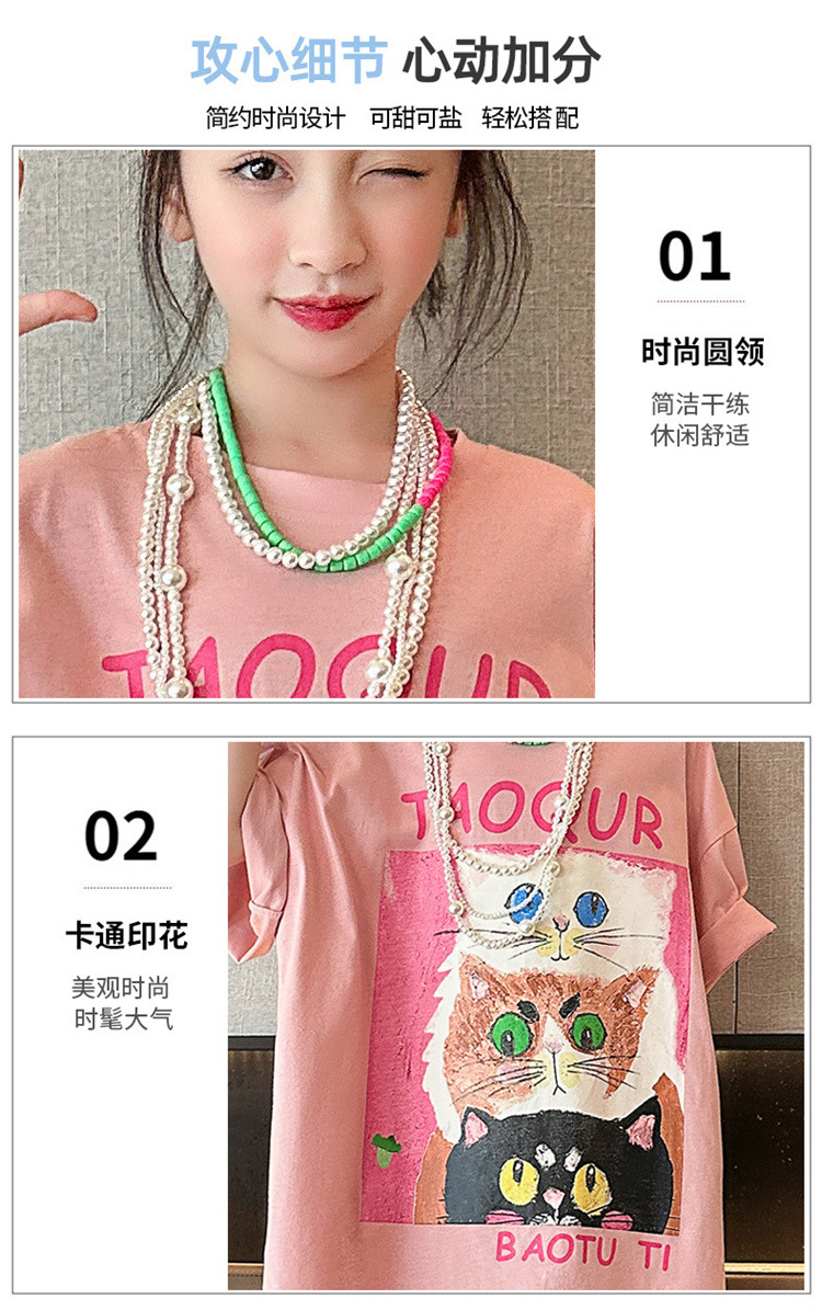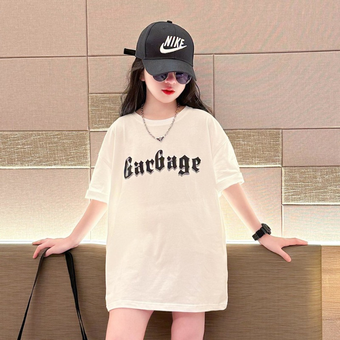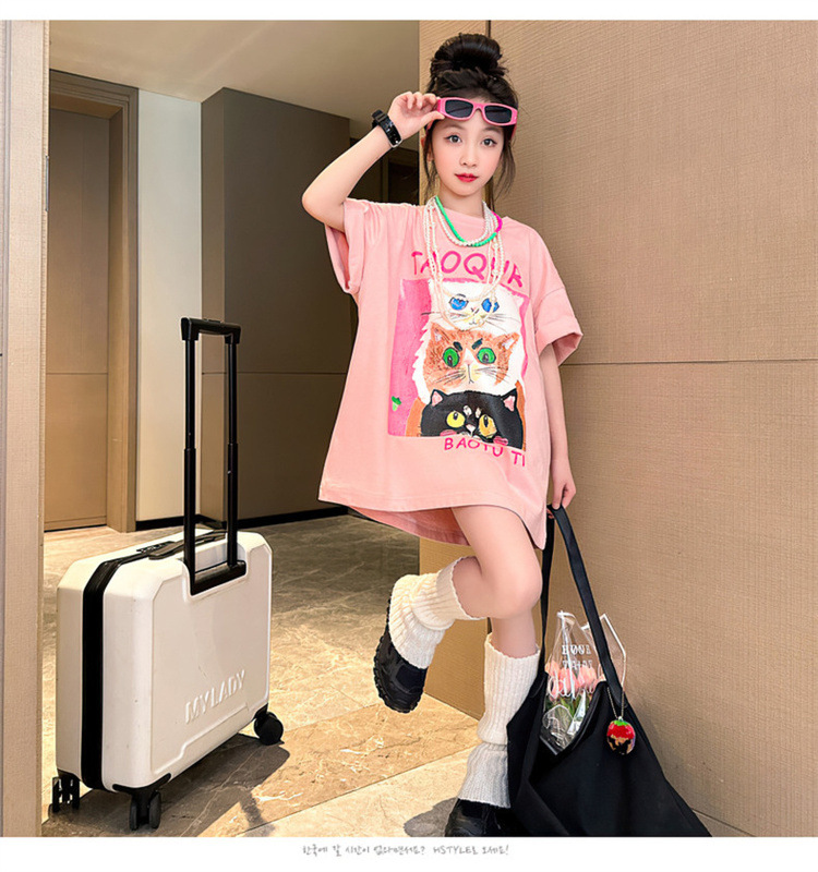 220g 여자 반팔 티셔츠 새로운 스타일 여름 큰 아이들 느슨한 여름 아이들의 긴 반소매 최고 조수
