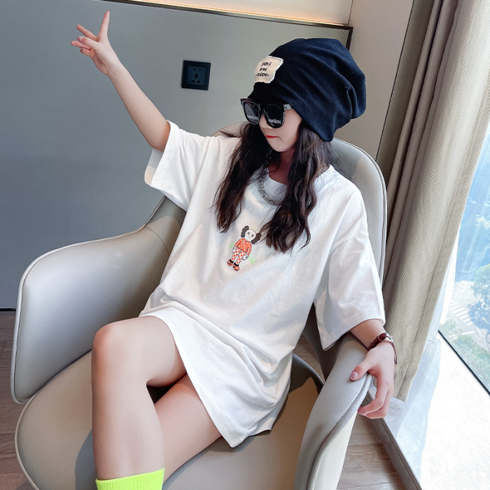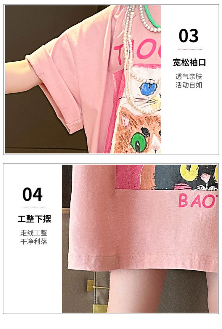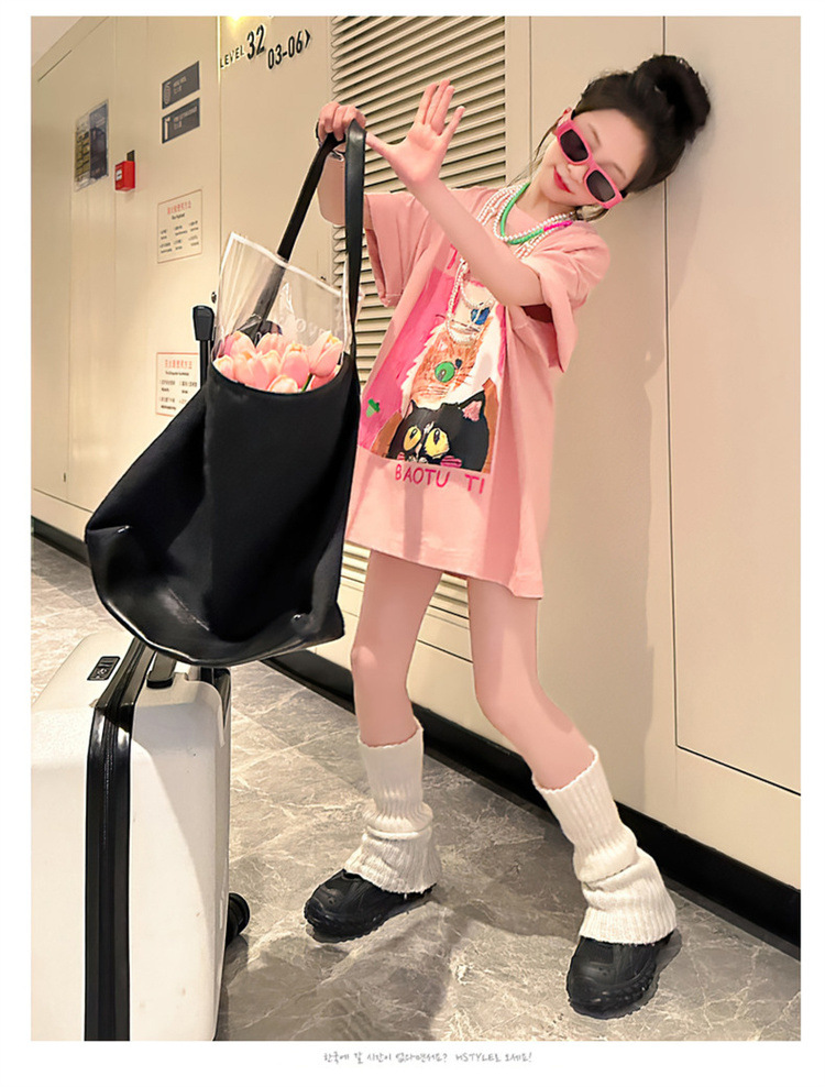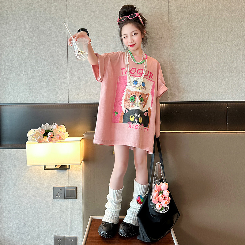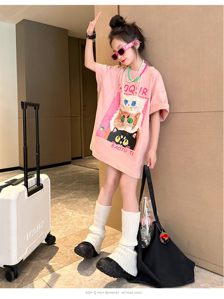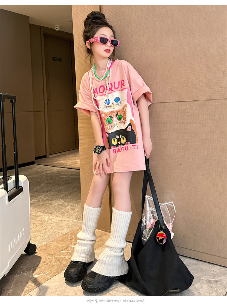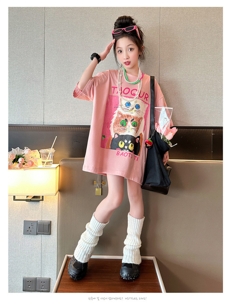 220g 여자 반팔 티셔츠 새로운 스타일 여름 큰 아이들 느슨한 여름 아이들의 긴 반소매 최고 조수