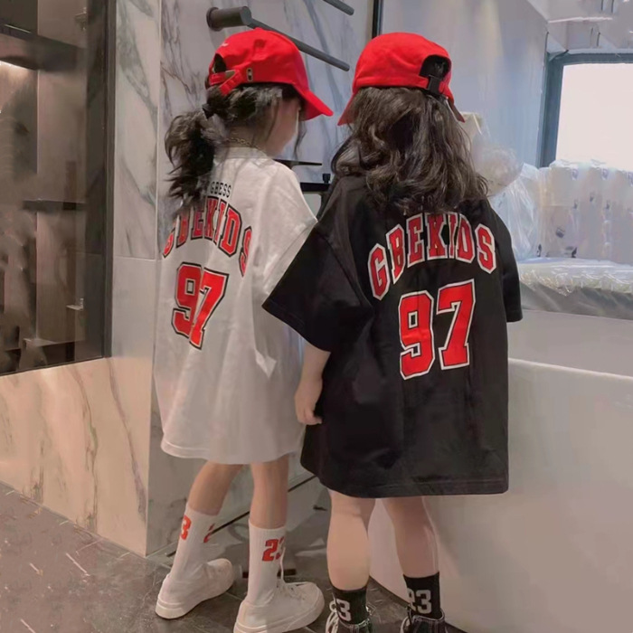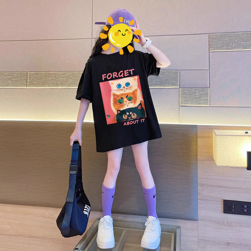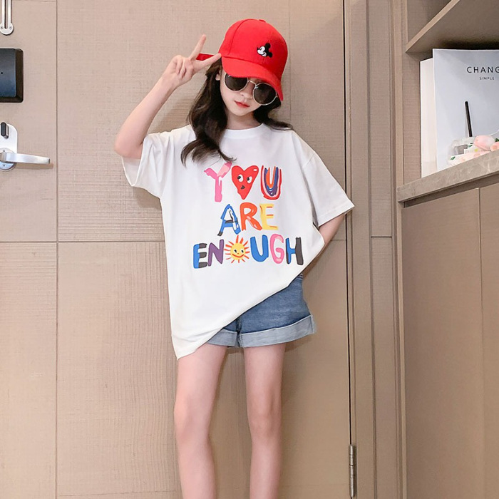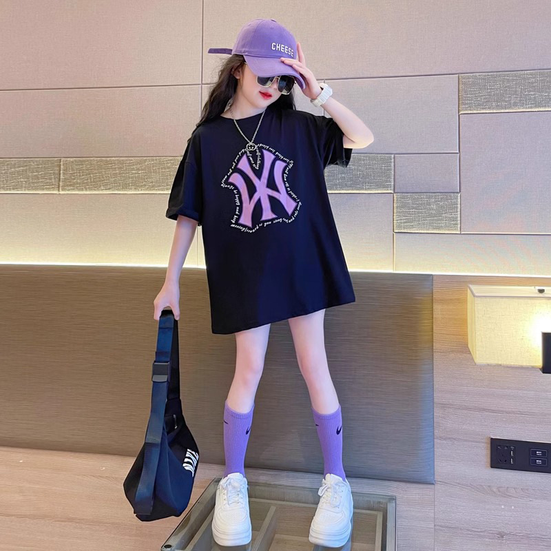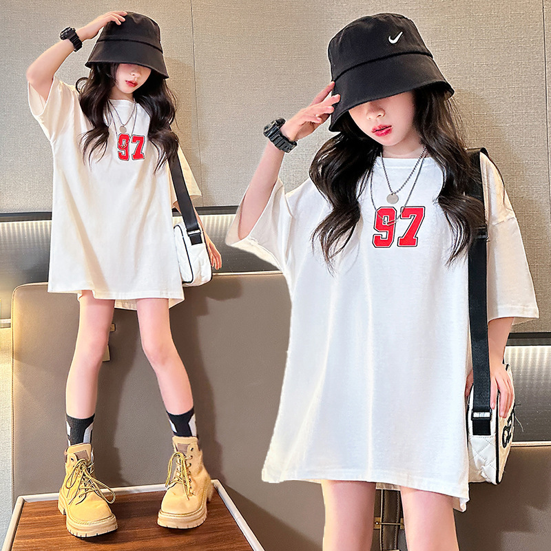 220g 여자 반팔 티셔츠 새로운 스타일 여름 큰 아이들 느슨한 여름 아이들의 긴 반소매 최고 조수스토어 가기