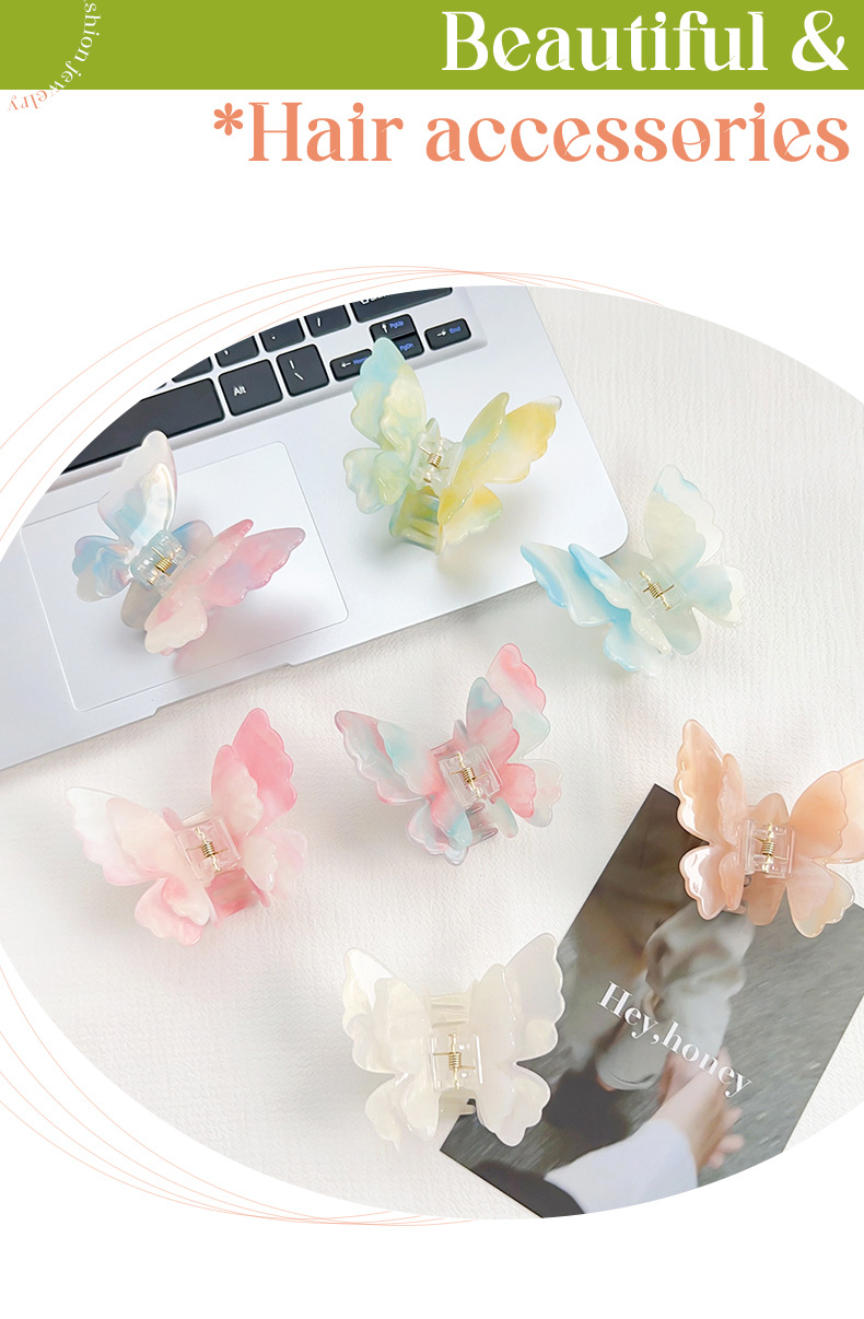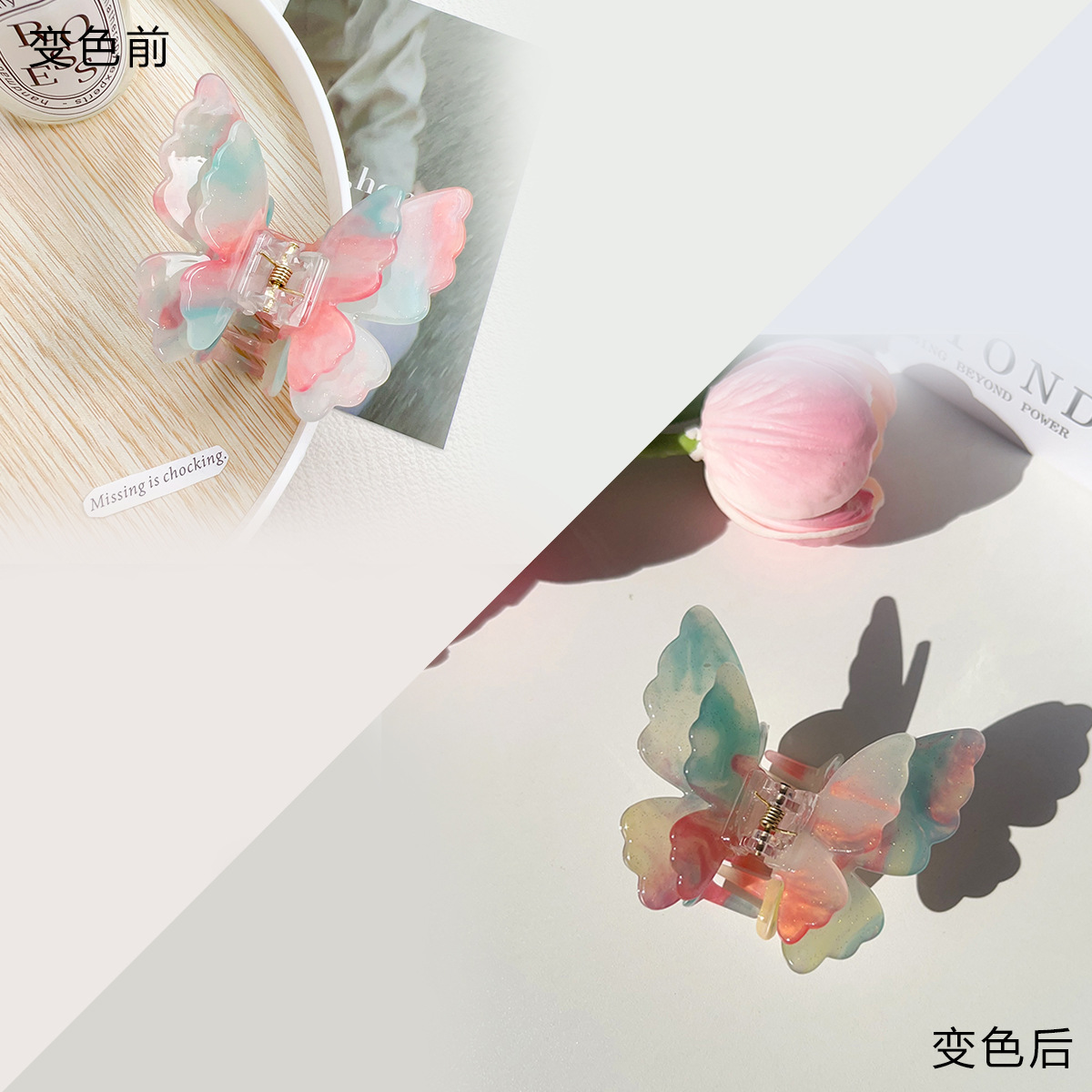 프랑스 봄과 여름 새로운 슈퍼 페어리 하이 엔드 더블 레이어 나비 색상 변경 헤어핀 예술적 달콤한 신선한 헤어 액세서리 잡아 클립 여성용스토어 가기