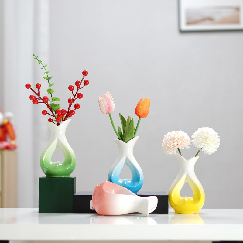 국경 간 Ins 세라믹 꽃병 작은 꽃 삽입 간단한 현대 사무실 데스크탑 꽃병 수경 식물 꽃 냄비 말린 꽃