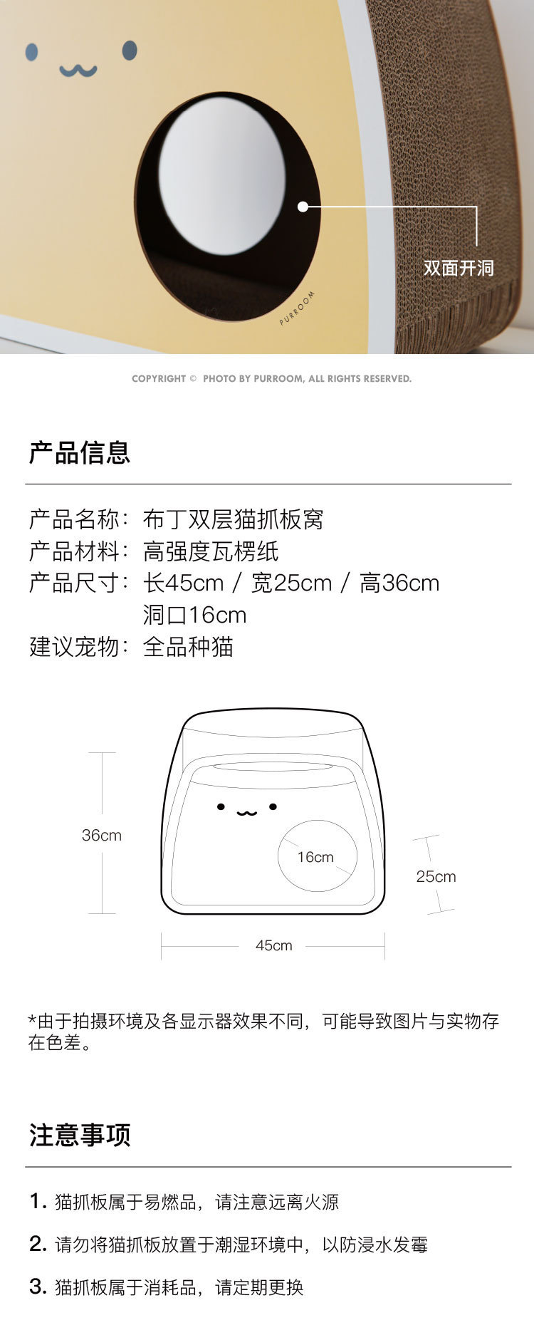 PURROOM 오리지널 푸딩 새끼 더블 레이어 고양이 스크래치 보드 고양이 둥지 연삭 발톱 고강도 골판지 상자 고양이 장난감스토어 가기