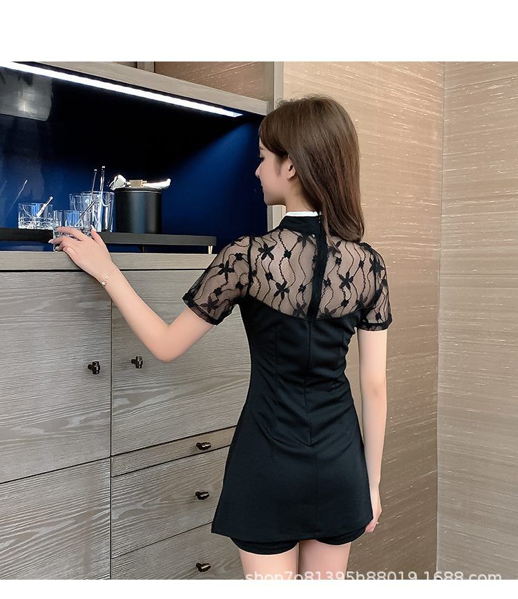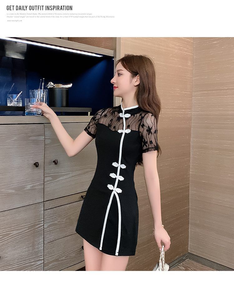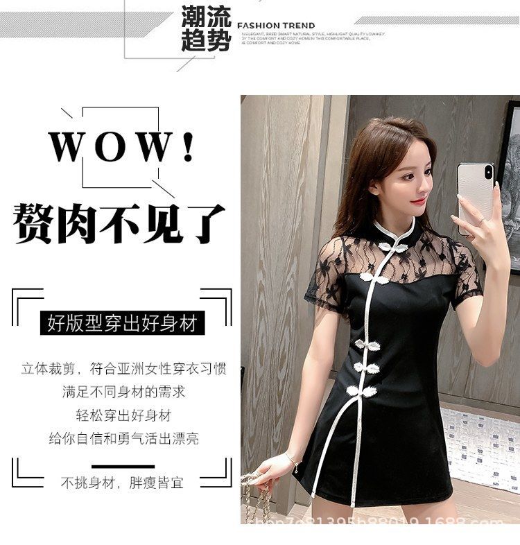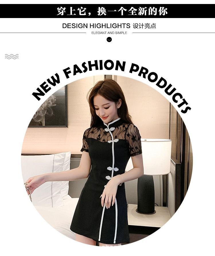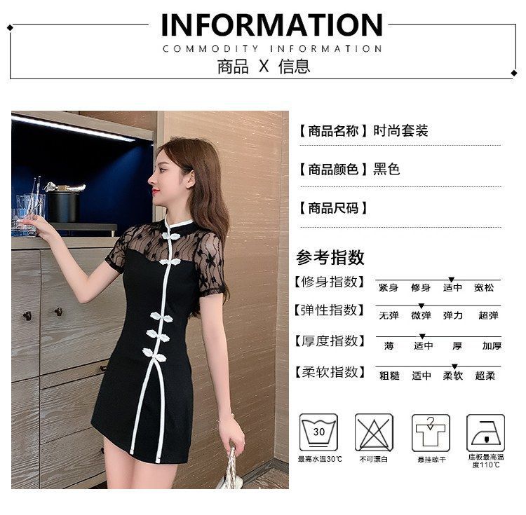 연예인 샤오샹 스타일 소녀의 수정 청삼 레이스 원피스 투피스 세트 원피스 여성 프랑스 스타일 블랙 원피스스토어 가기