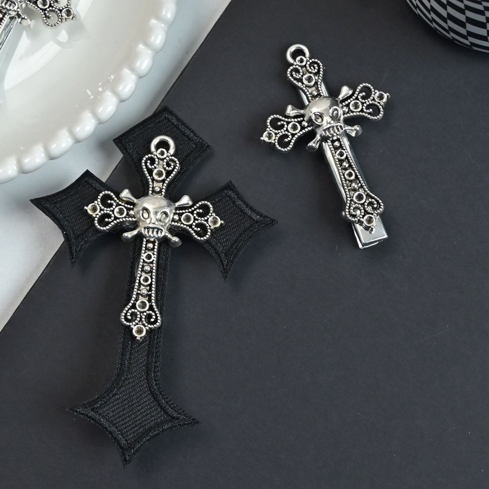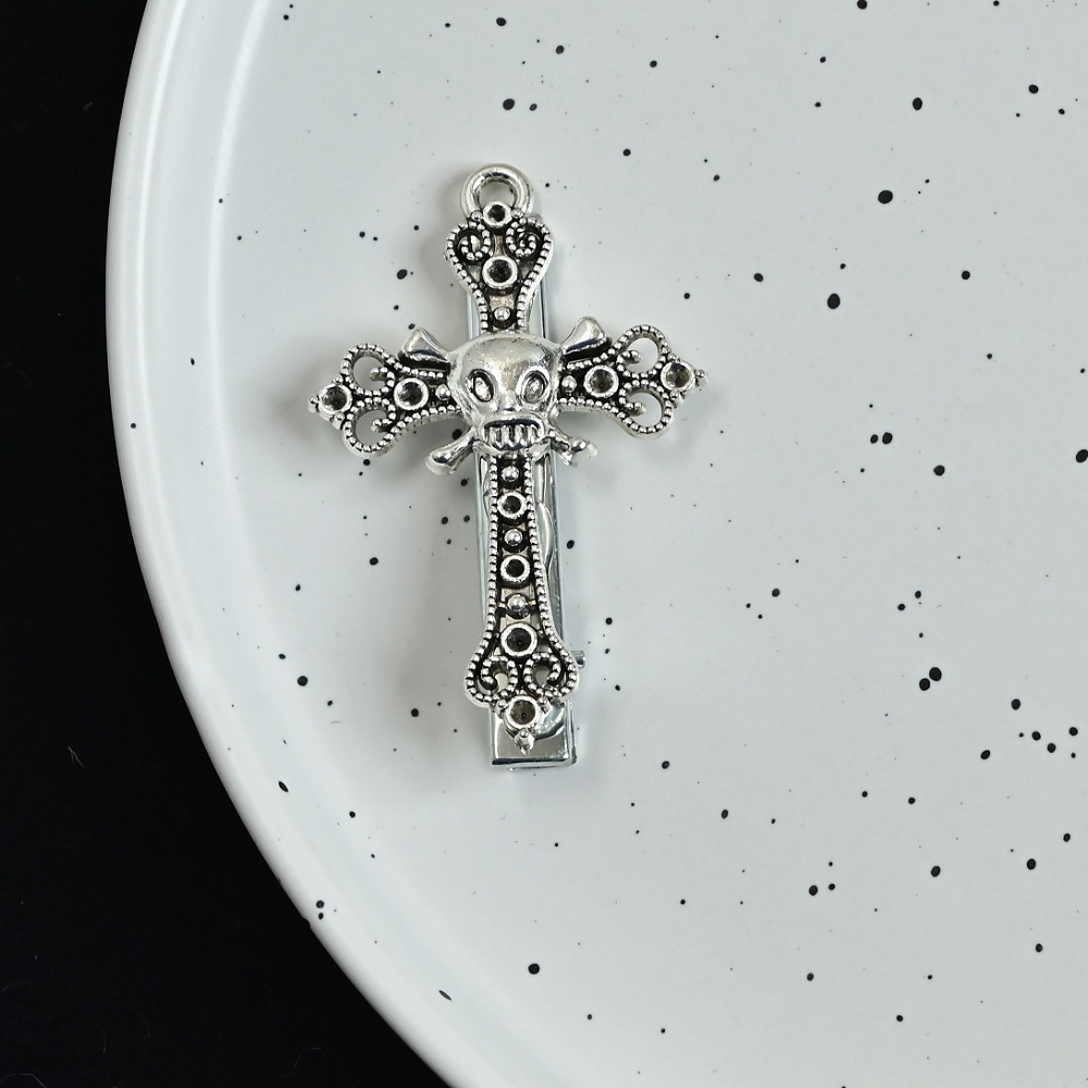 디아블로 Y2K 헤어핀 해골 합금 크로스 헤어핀 달콤한 쿨 사이드 클립 로리타 손으로 만든 헤어핀 헤어 액세서리 여성