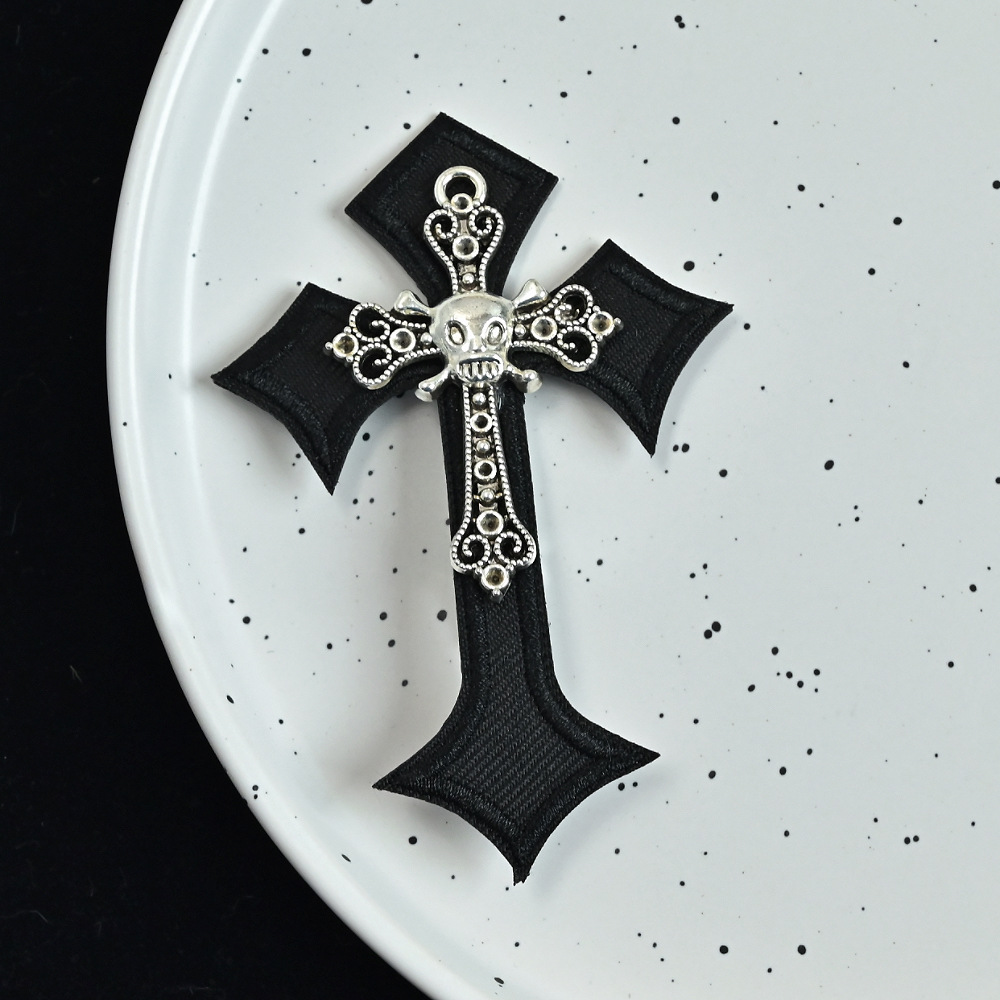 • 2 # 해골 크로스 자수 크로스 머리핀