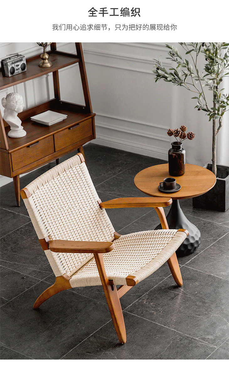 안장 의자 노르딕 솔리드 우드 빈티지 싱글 소파 홈스테이 호텔 중간 고대 로프 접히는 의자 등받이 의자 등나무 의자