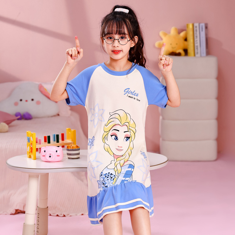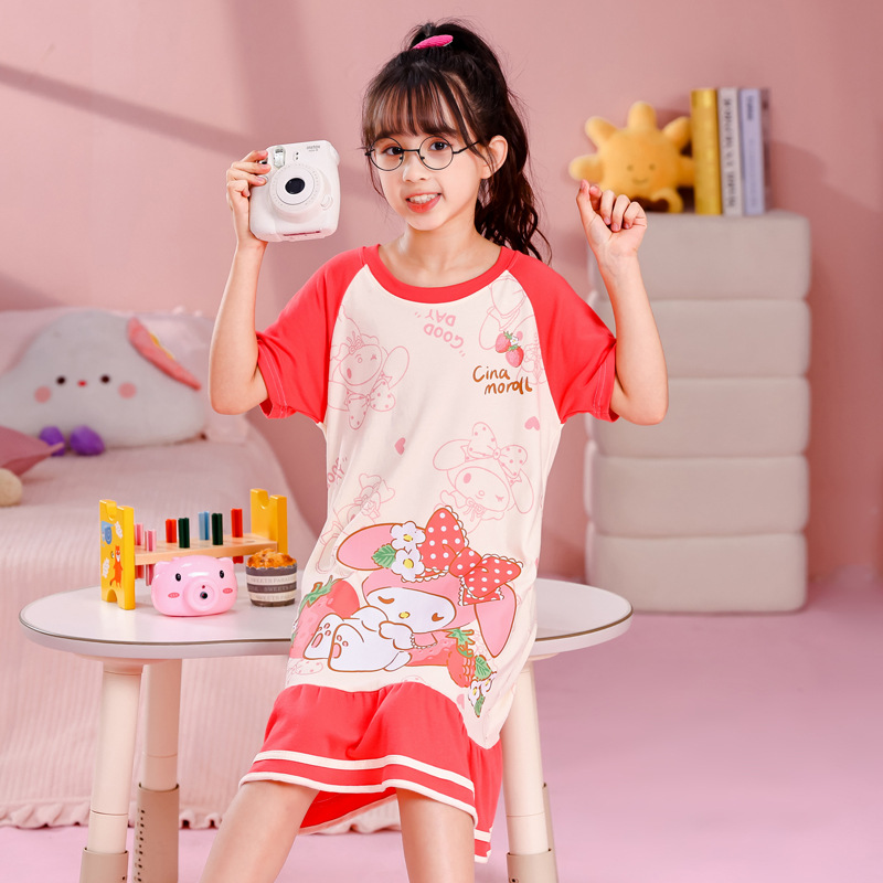소녀 여름 잠옷 반팔 잠옷 소매 어린이를위한 얇은 소매 중 및 노인 어린이와 아기는 학생을위한 외부 여름 홈 옷을 입을 수 있습니다스토어 가기