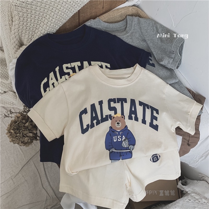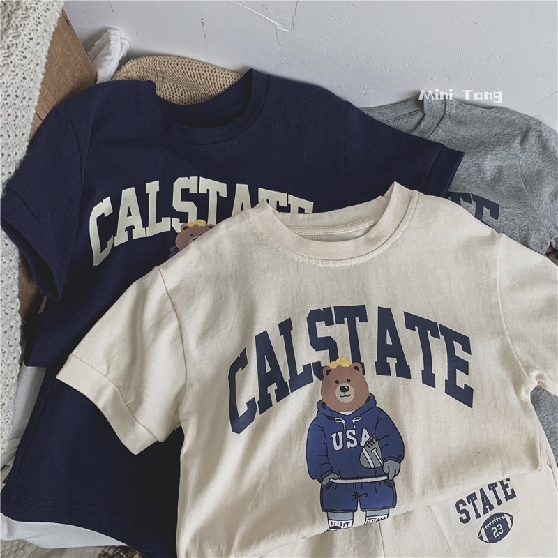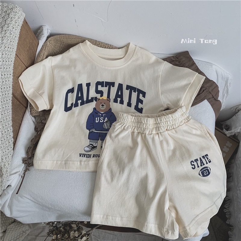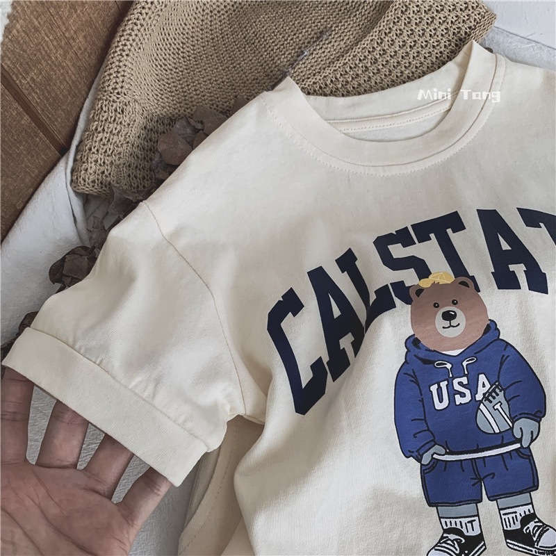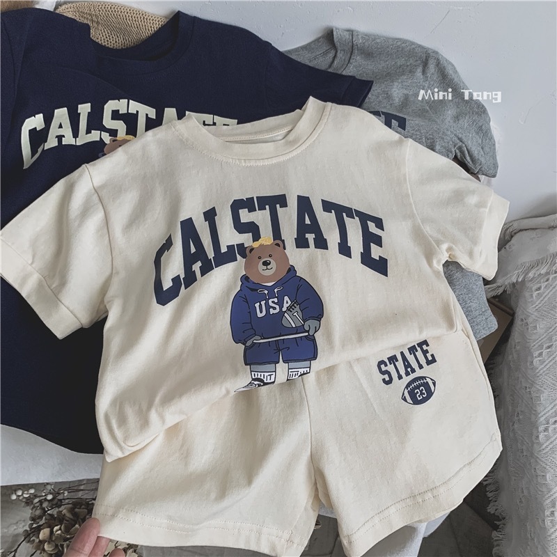 남녀 아기 세트 2026 여름 신상품 중소형 아동용 곰돌이 만화 캐릭터 스타일리쉬한 얇은 캐주얼 스포츠 투피스 세트