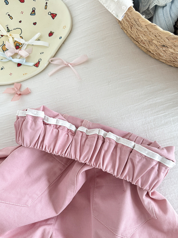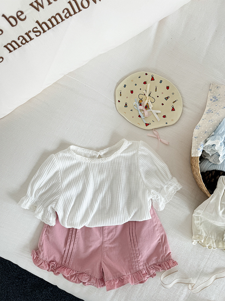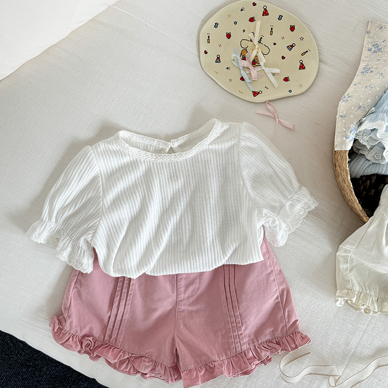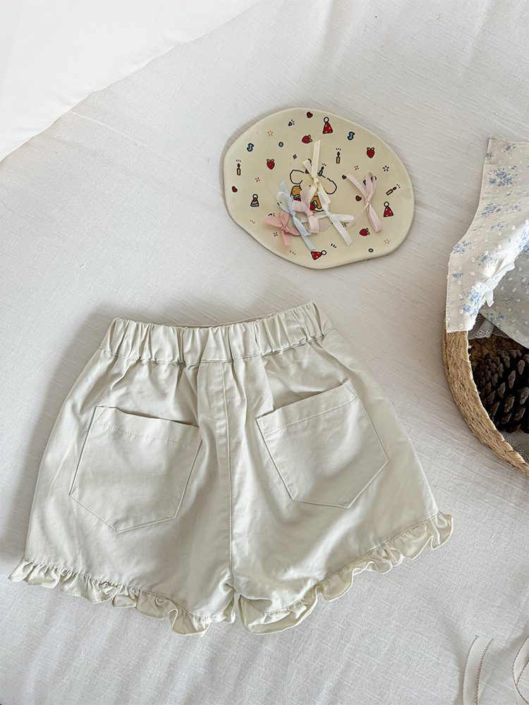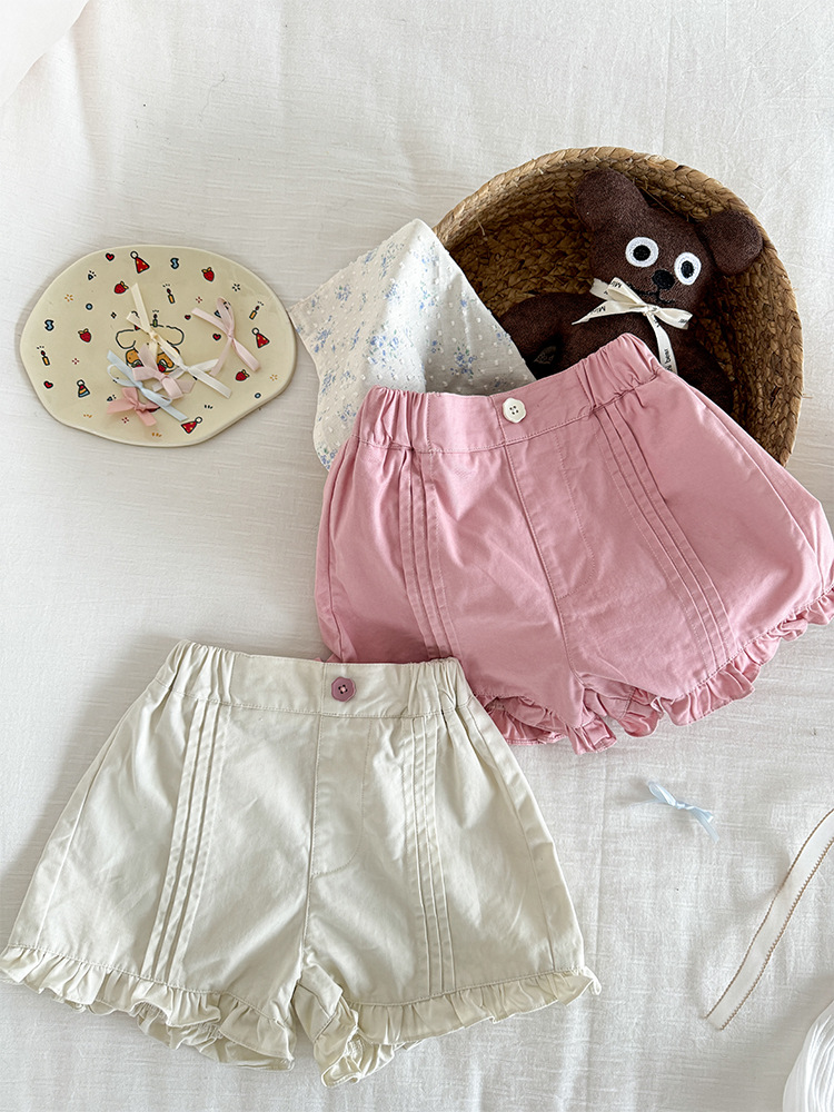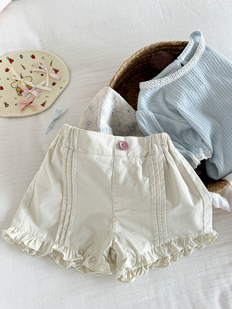 여아 여름 반바지 2026 신상 아동용 한국 스타일 다용도 캐주얼 레이스 러플 단색 반바지