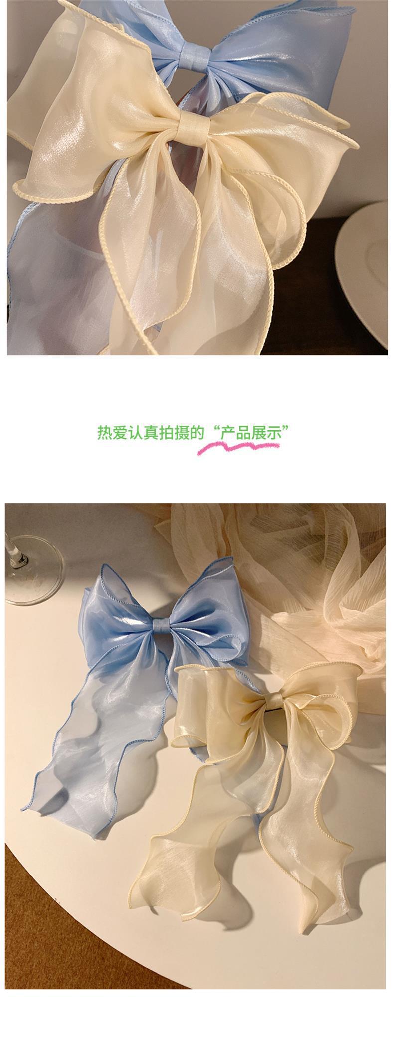 봄 슈퍼 페어리 화이트 거즈 활 리본 헤어 핀 여성용 하이 엔드 헤드 웨어 대형 헤어핀 헤어 액세서리스토어 가기