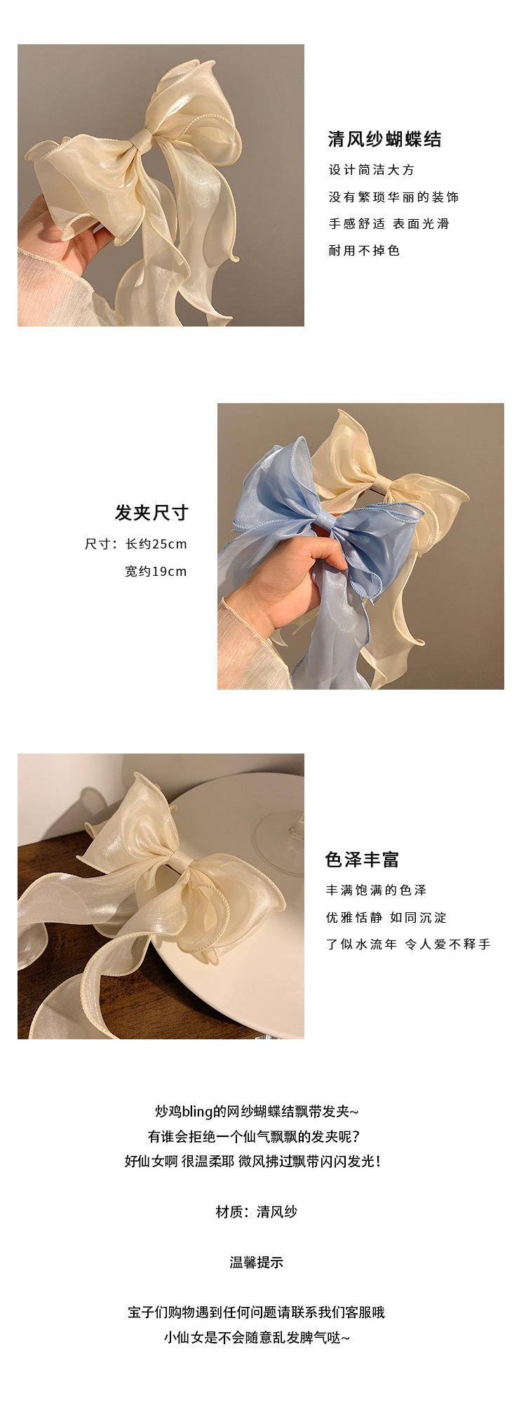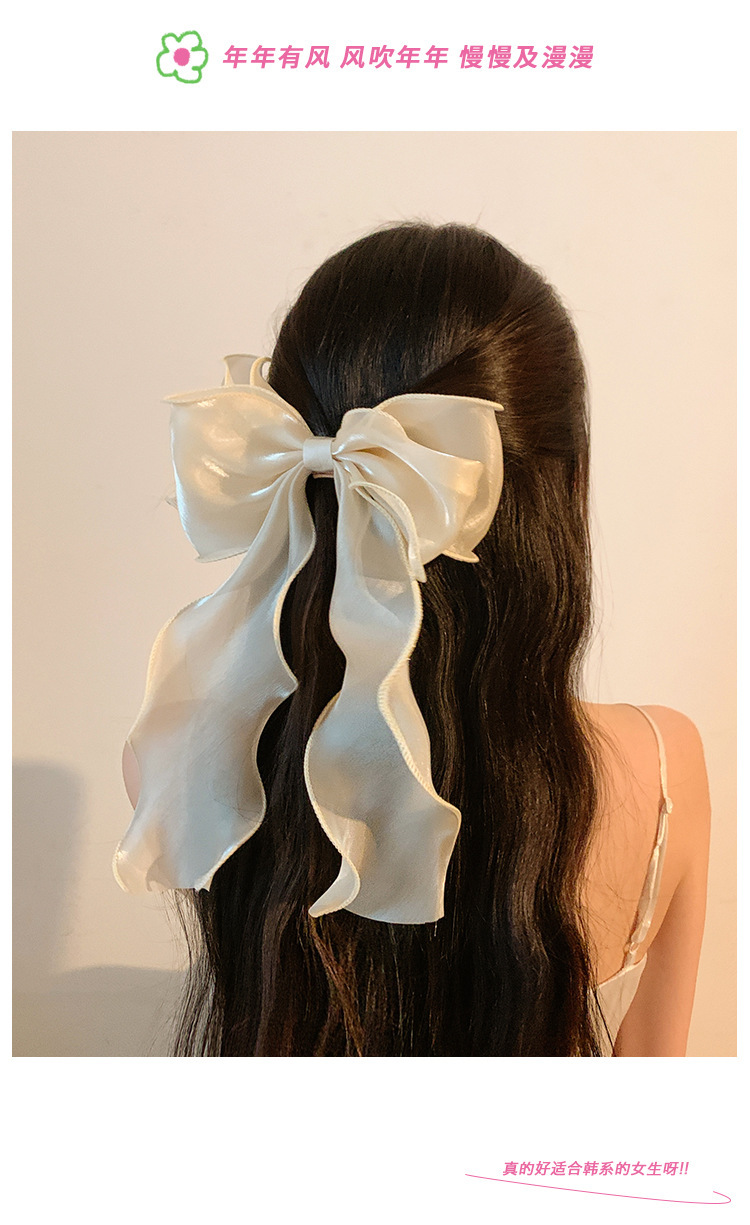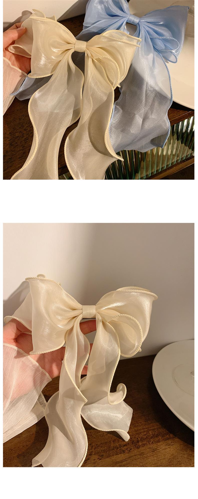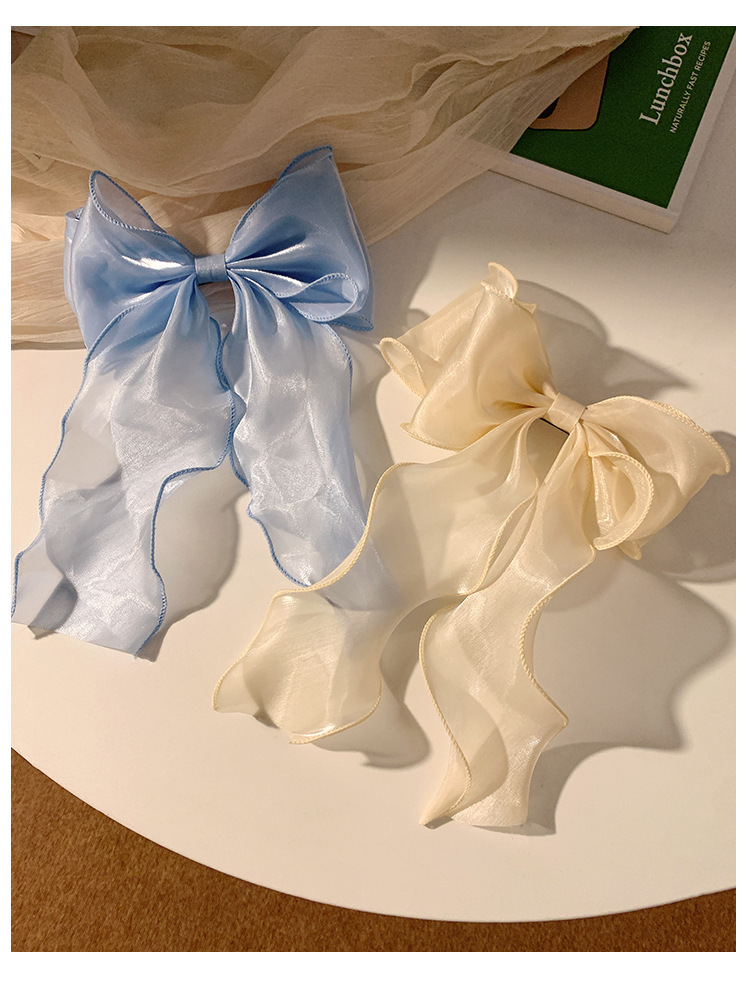 봄 슈퍼 페어리 화이트 거즈 활 리본 헤어 핀 여성용 하이 엔드 헤드 웨어 대형 헤어핀 헤어 액세서리