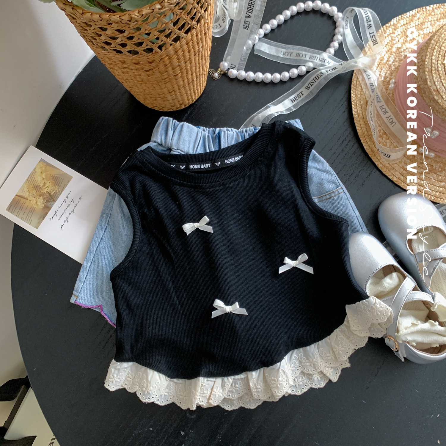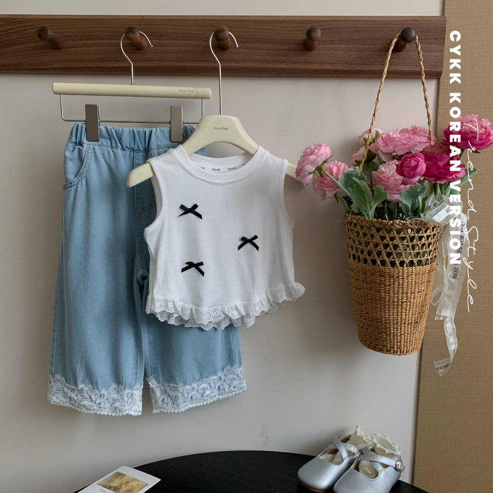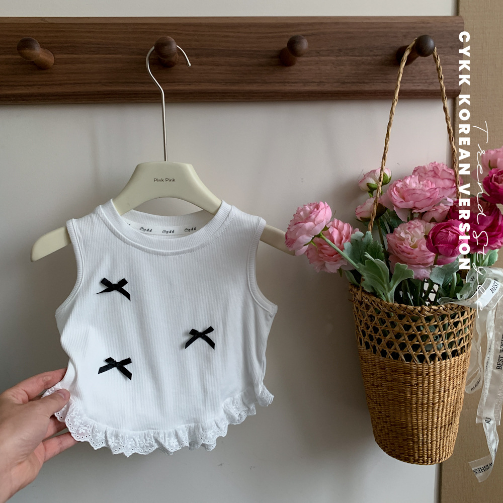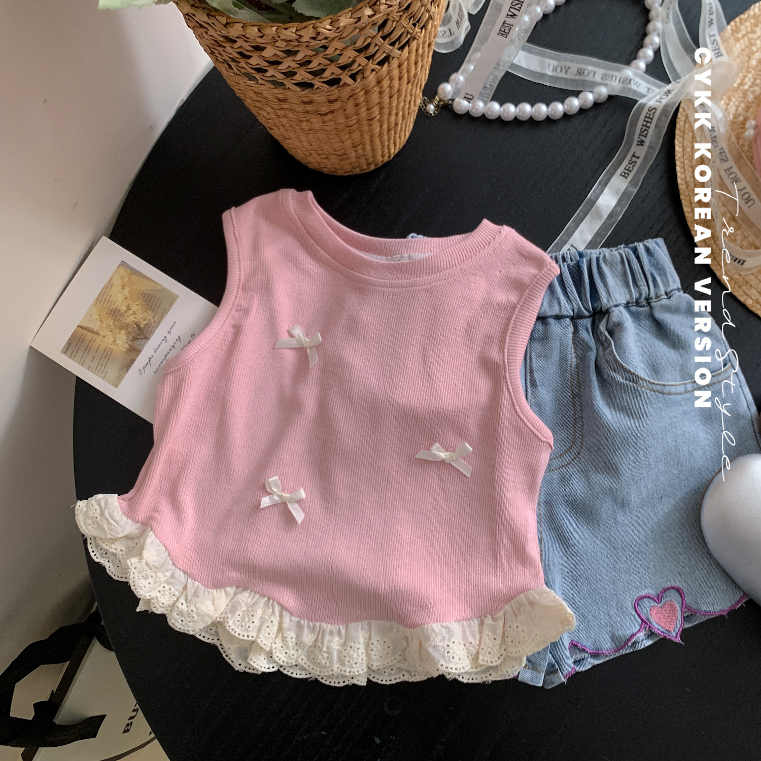 차와 코코아 소녀 민소매 최고 여름 2025 새로운 스타일 얇은 레이스 바느질 작은 조끼스토어 가기