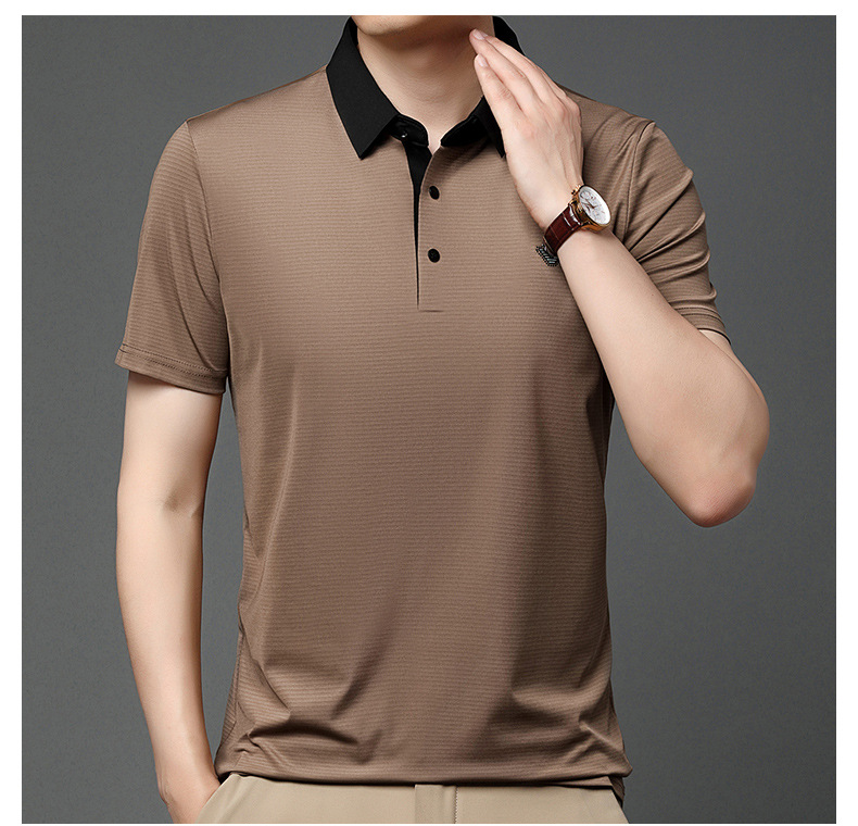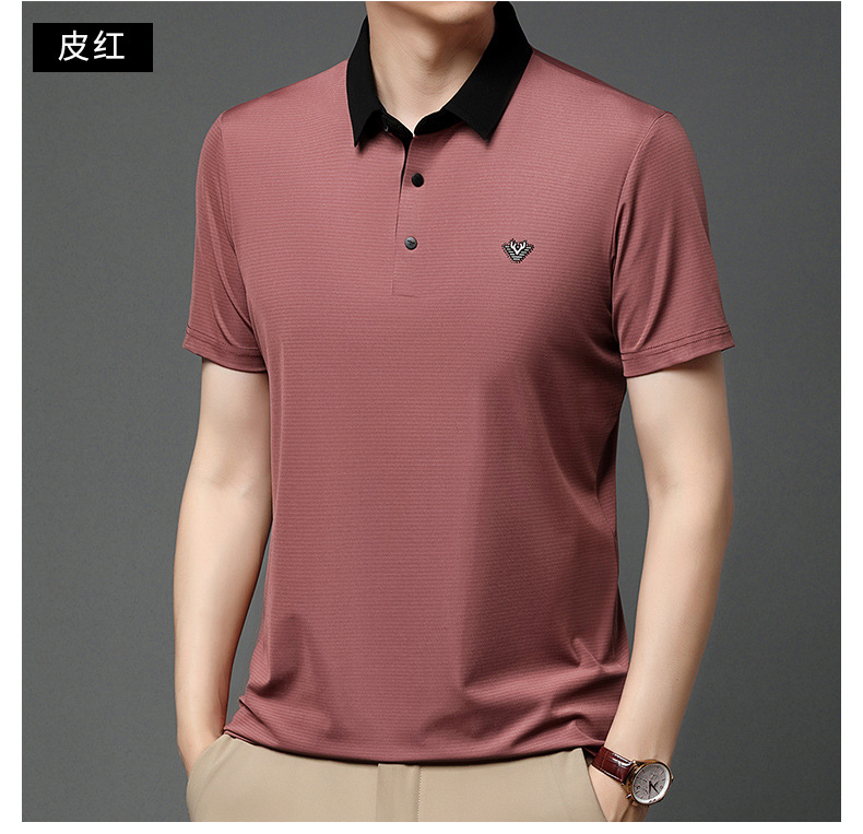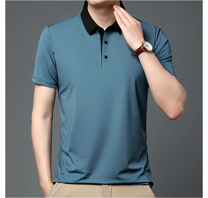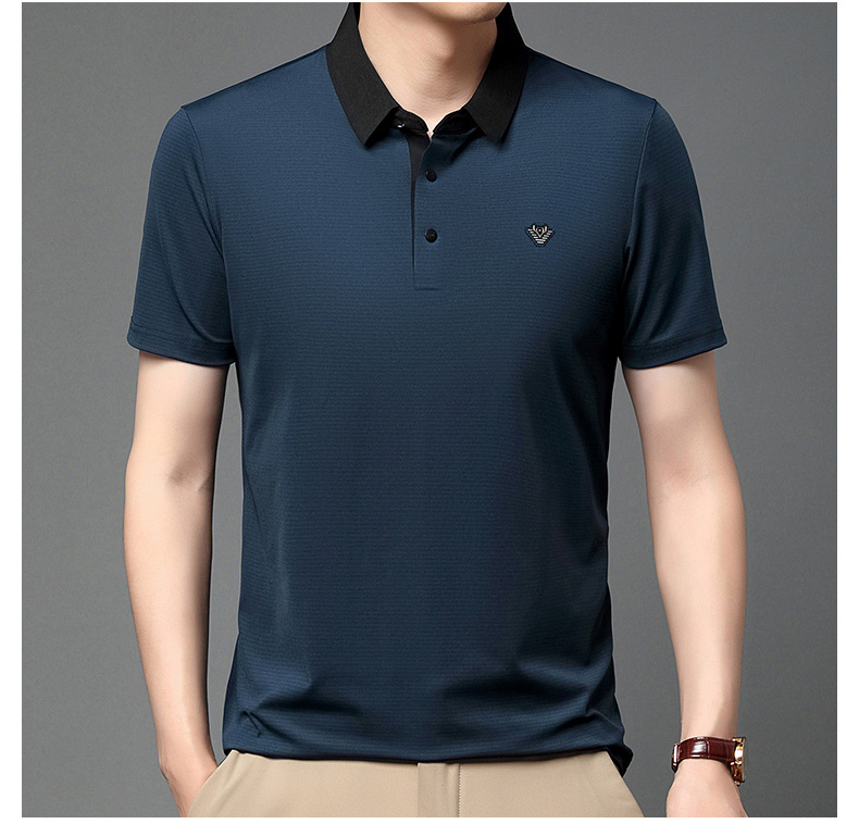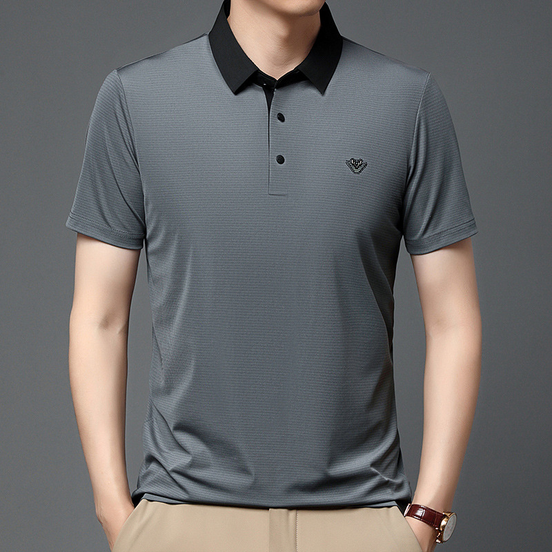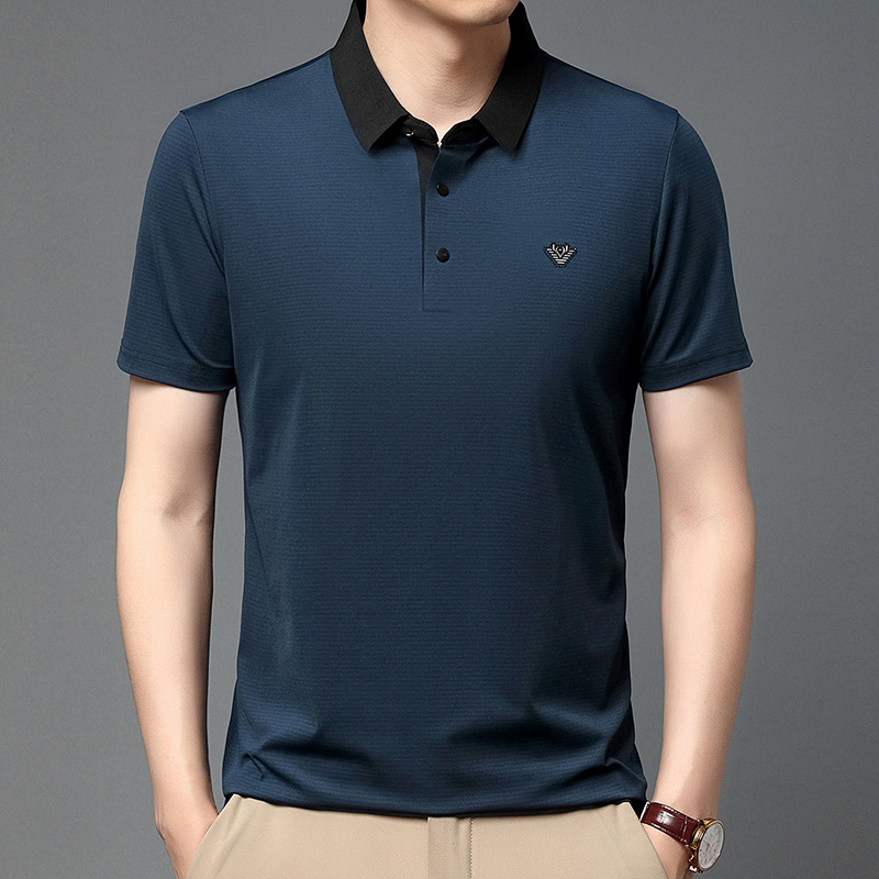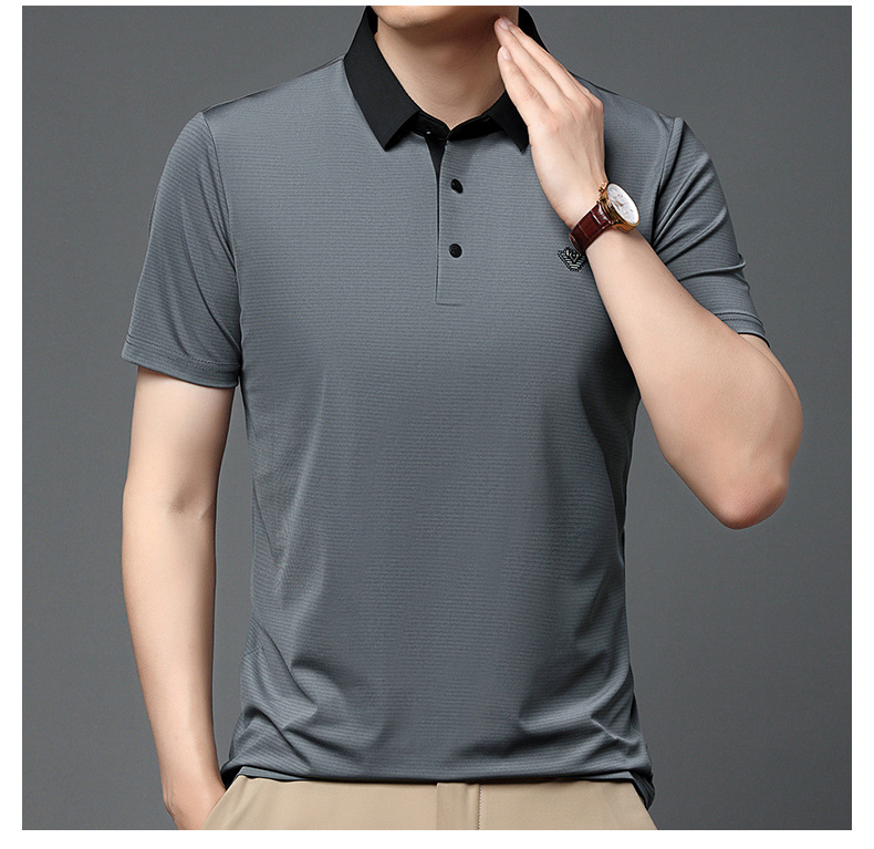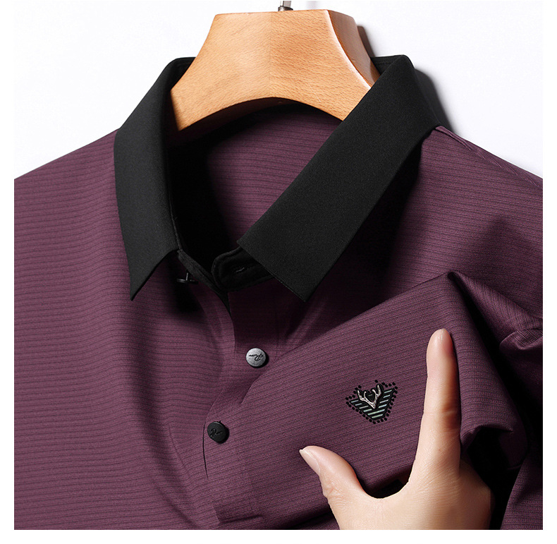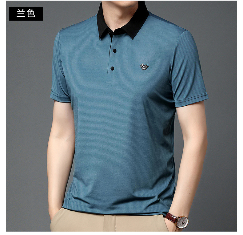 젊고 중년 남성의 새로운 자수 폴로 셔츠 여름 비즈니스 캐주얼 패션 반팔 티셔츠 Lel Striped Top스토어 가기