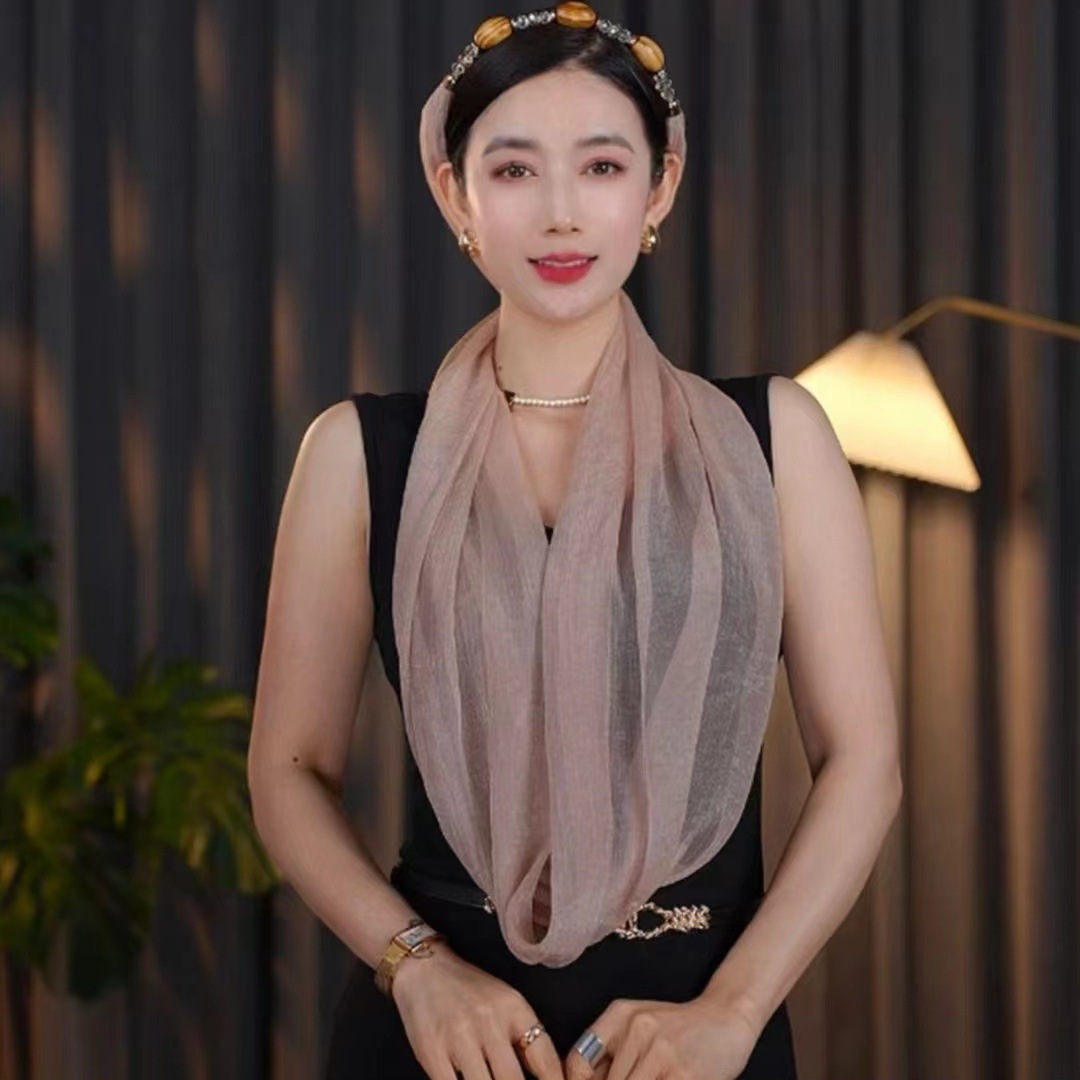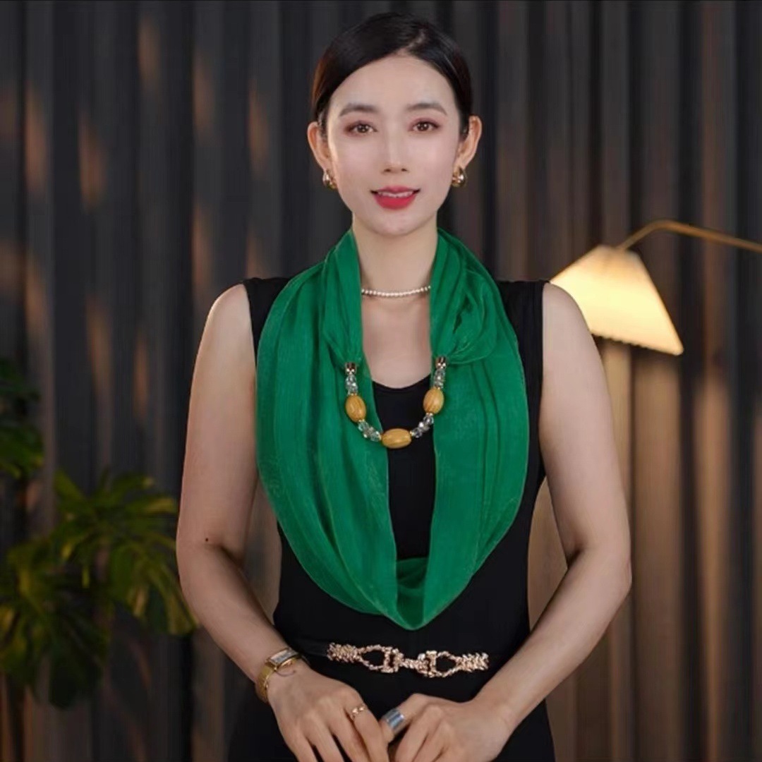 예술적 레트로 비즈 펜던트 쥬얼리 솔리드 컬러 실크 스카프 목걸이 여성 민족 스타일 대외 무역 스카프