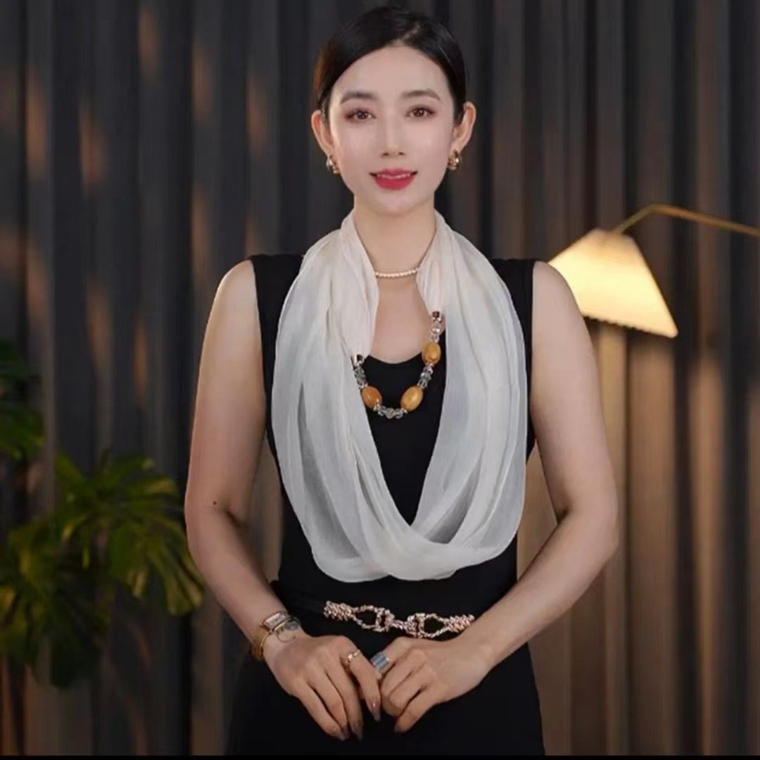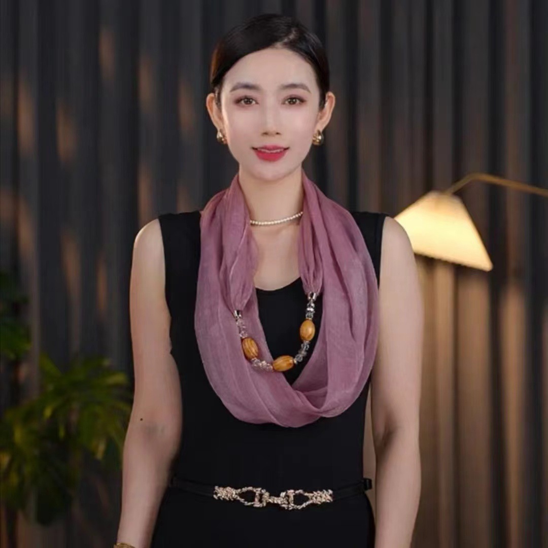 예술적 레트로 비즈 펜던트 쥬얼리 솔리드 컬러 실크 스카프 목걸이 여성 민족 스타일 대외 무역 스카프스토어 가기