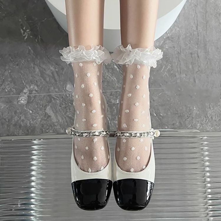 여름 JK 얇은 일본 레이스 메쉬 폴카 도트 메리 제인 유리 실크 크리스탈 짧은 양말스토어 가기