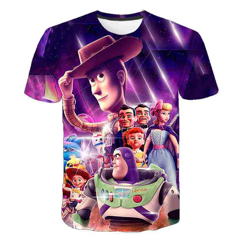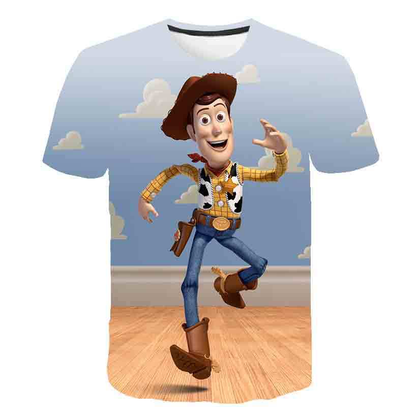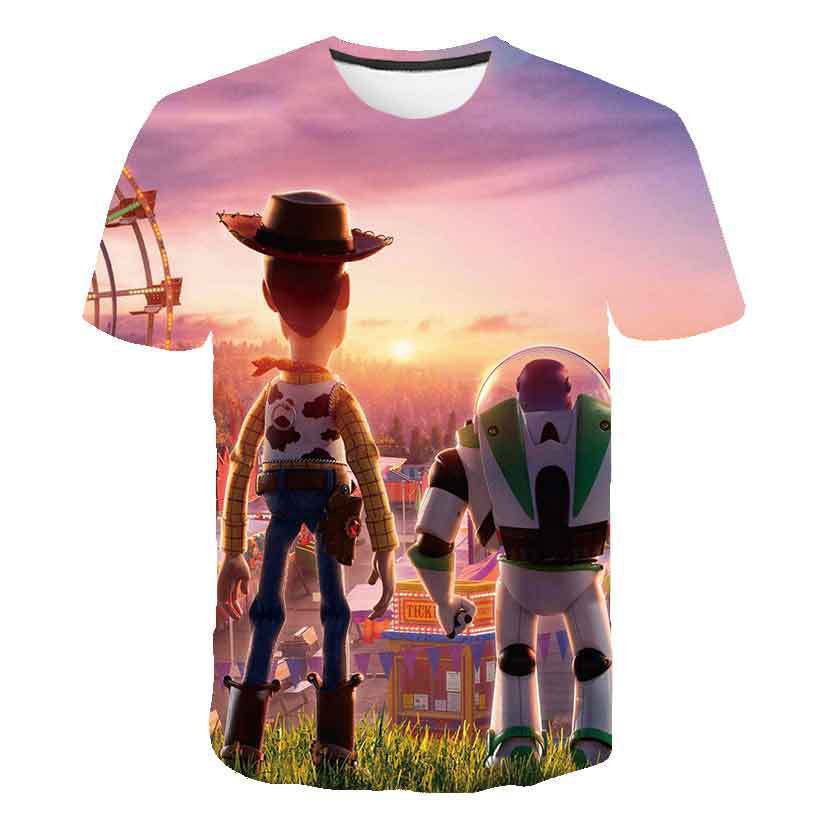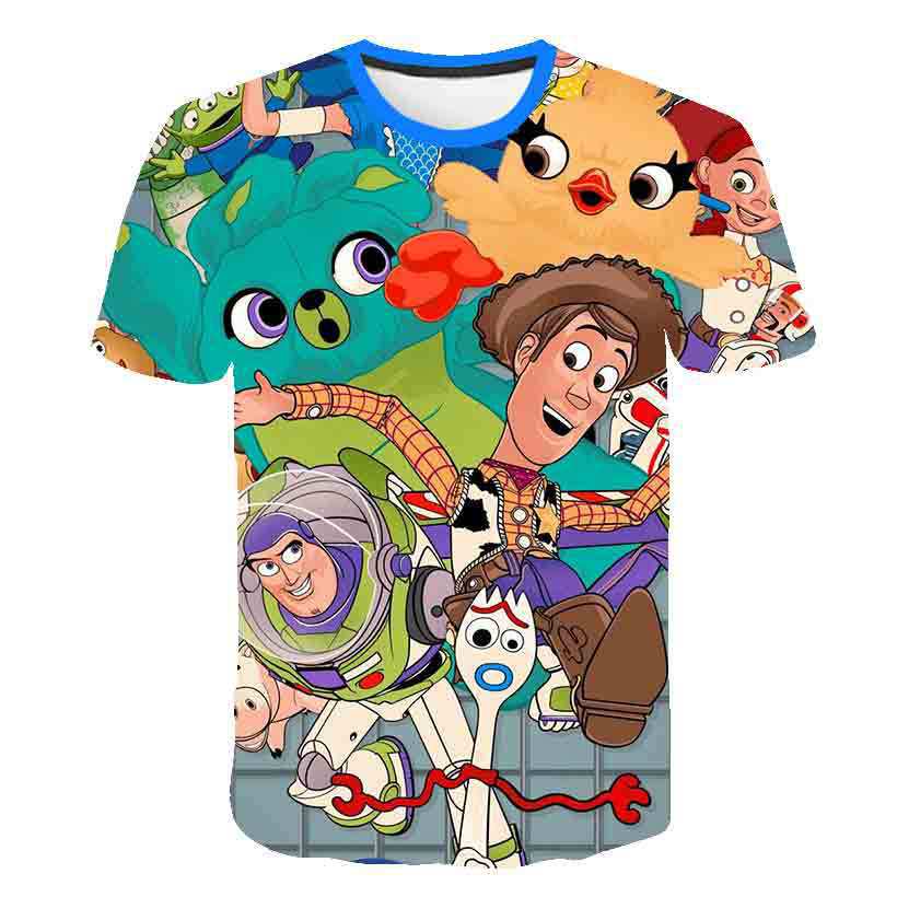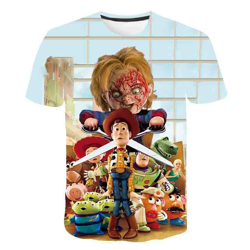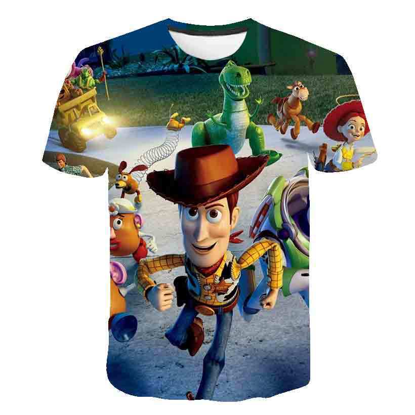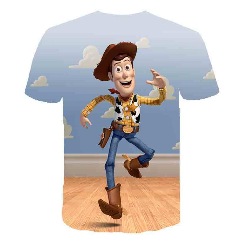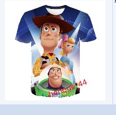 유럽과 미국의 토이 스토리 만화 애니메이션 3D 인쇄 남성 반팔 티셔츠 폭발성 라운드 넥 반팔스토어 가기