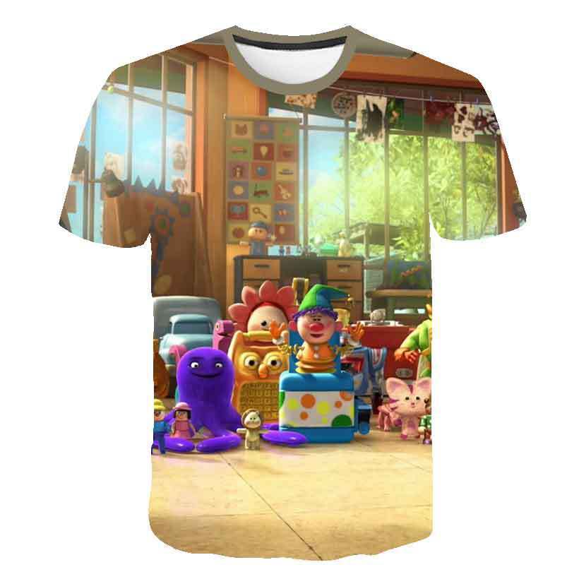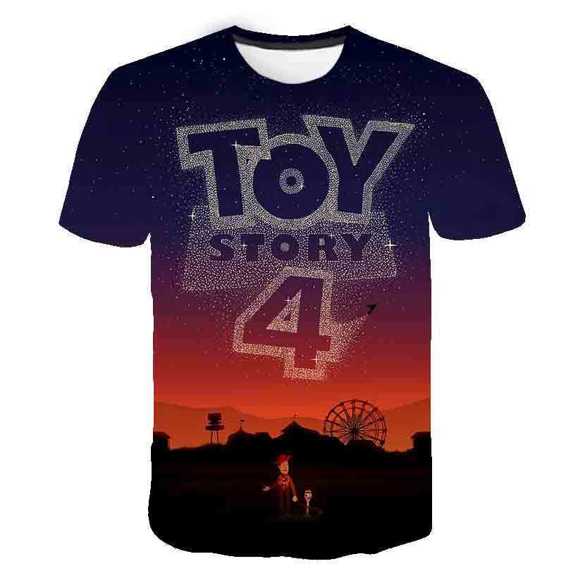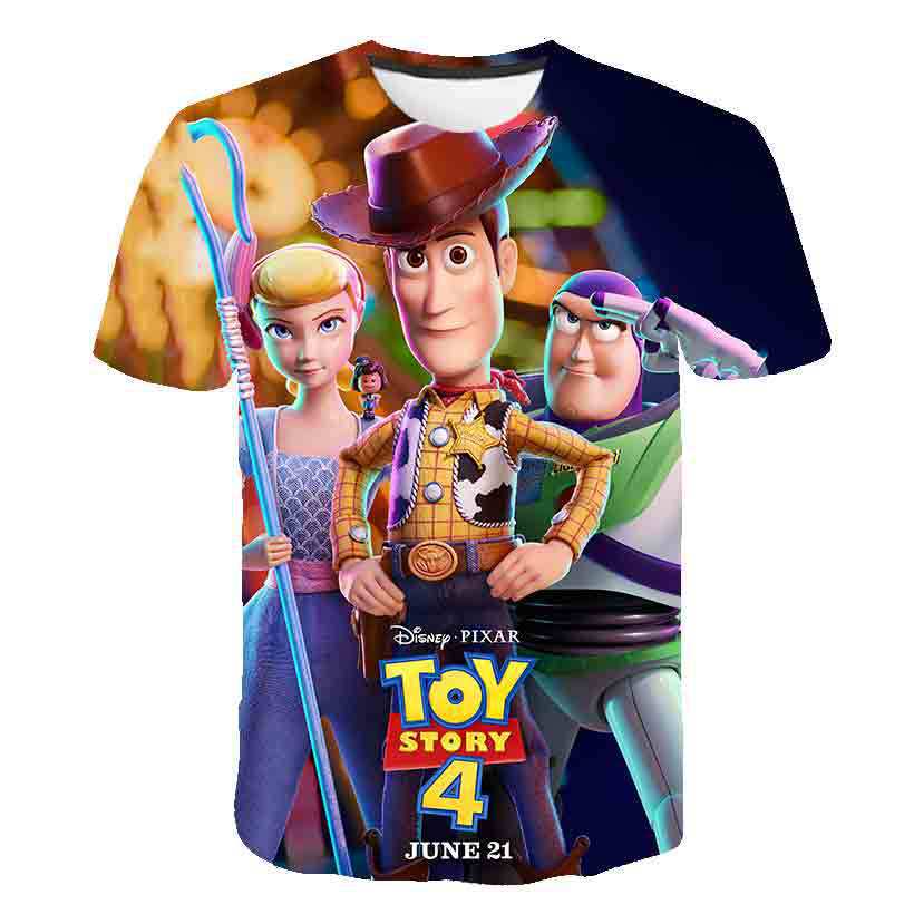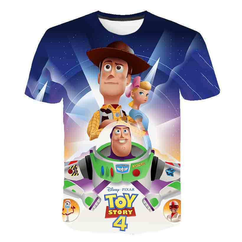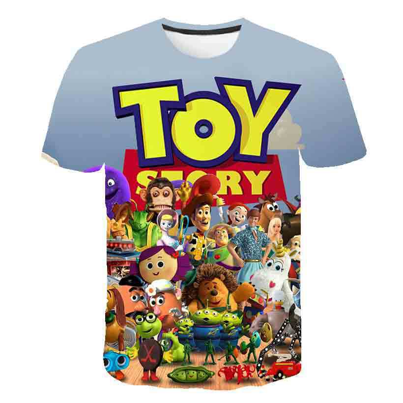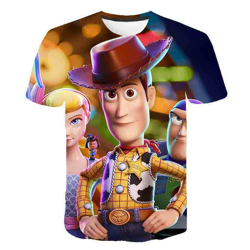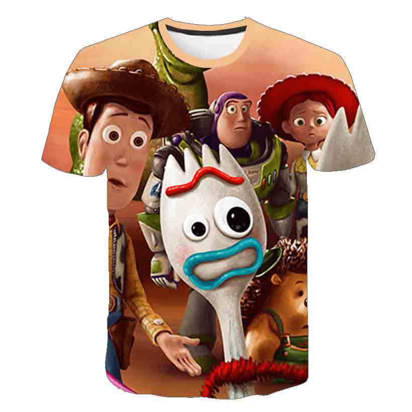 유럽과 미국의 토이 스토리 만화 애니메이션 3D 인쇄 남성 반팔 티셔츠 폭발성 라운드 넥 반팔스토어 가기
