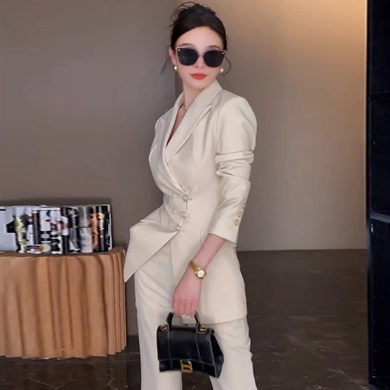 화이트 버클 가능한 기질 봄과 가을 세트 세트 여성 프로웨어 여신 팬 하이 엔드 투피스 세트스토어 가기