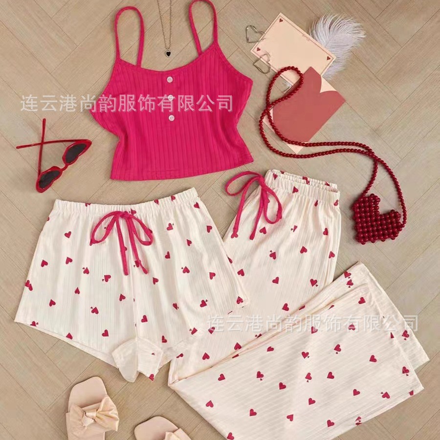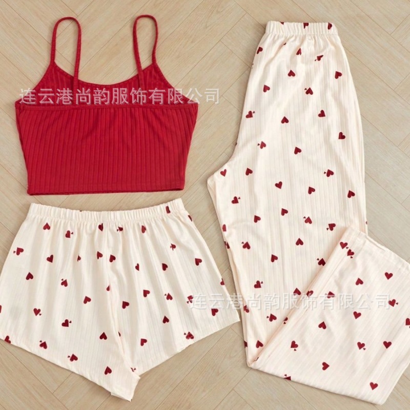 여성용 얇은 끈나시 잠옷 홈웨어 3종 세트 섹시한 외출복 소녀풍 예술적스토어 가기