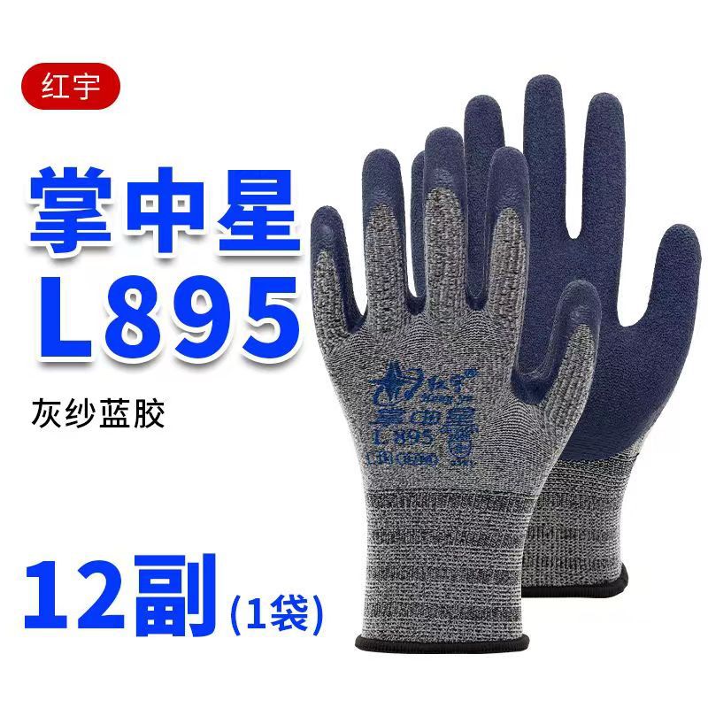 Xingyu Hongyu Palm Zhongxing L895 그레이 원사 블루 폼 탄성 미끄럼 방지 노동 보호 장갑스토어 가기