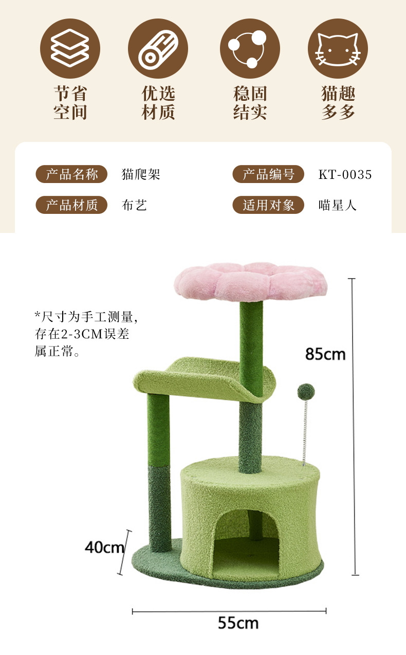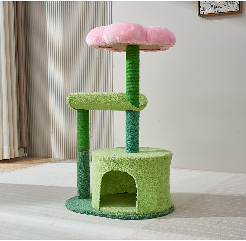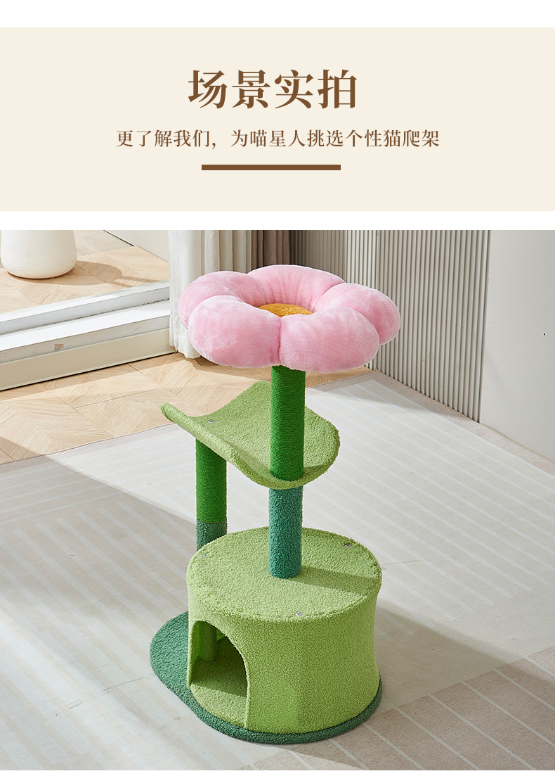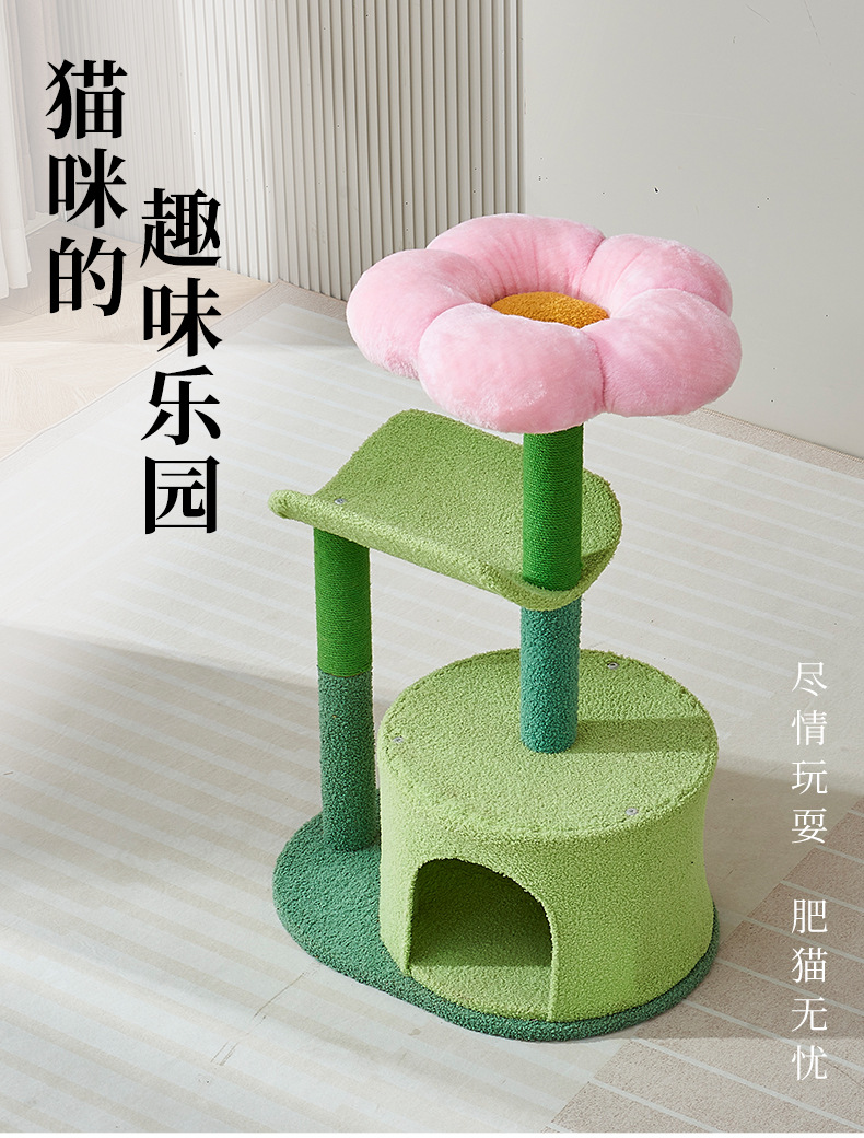 고양이 등반 프레임, 귀여운 꽃, 모피, 사계절 사용 가능한 고양이 장난감, 고양이 둥지, 고양이 긁는 포스트, 올인원 고양이 공, 고양이 등반 프레임