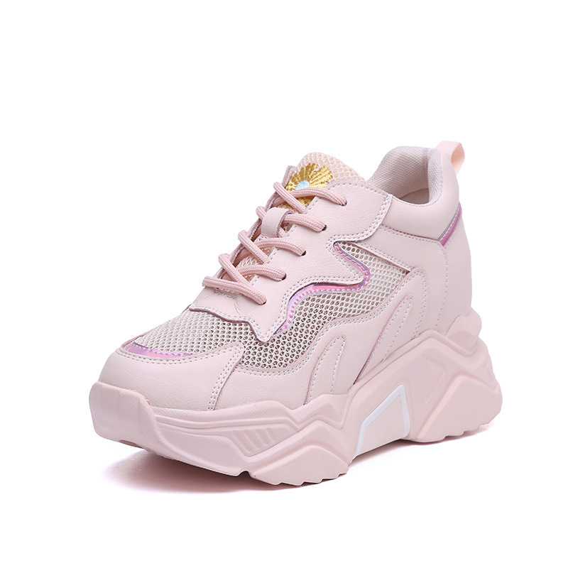 내부 높이 8CM 통기성 메쉬 화이트 신발 여성의 봄과 가을 새로운 두꺼운 싱글 스포츠 캐주얼 올 매치 토레 신발 여성