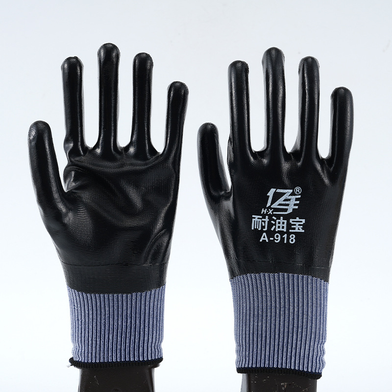 • 블랙 완전히 몰입 된 니트릴 노동 보호 장갑