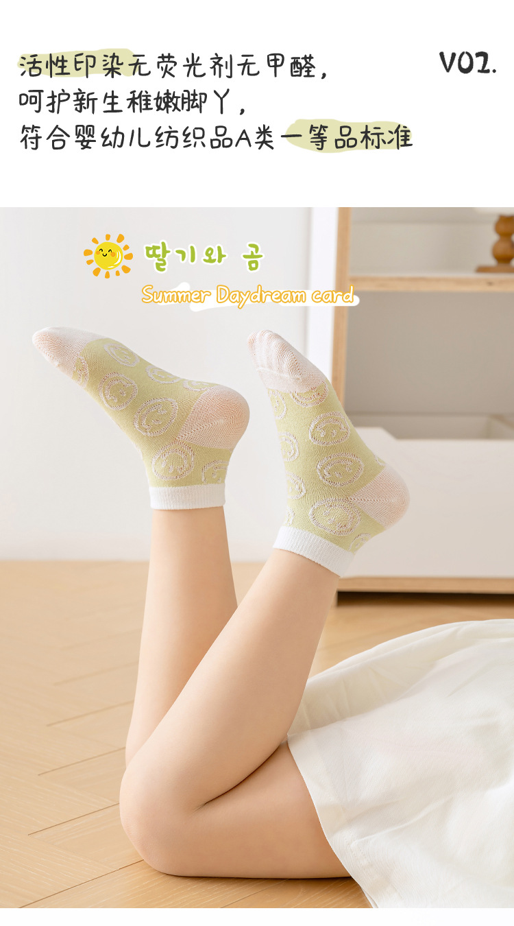 새로운 어린이 양말 봄과 여름 얇은면 양말 통기성 만화 튜브 양말 답답한 발이 아닌 여자 양말 도매스토어 가기