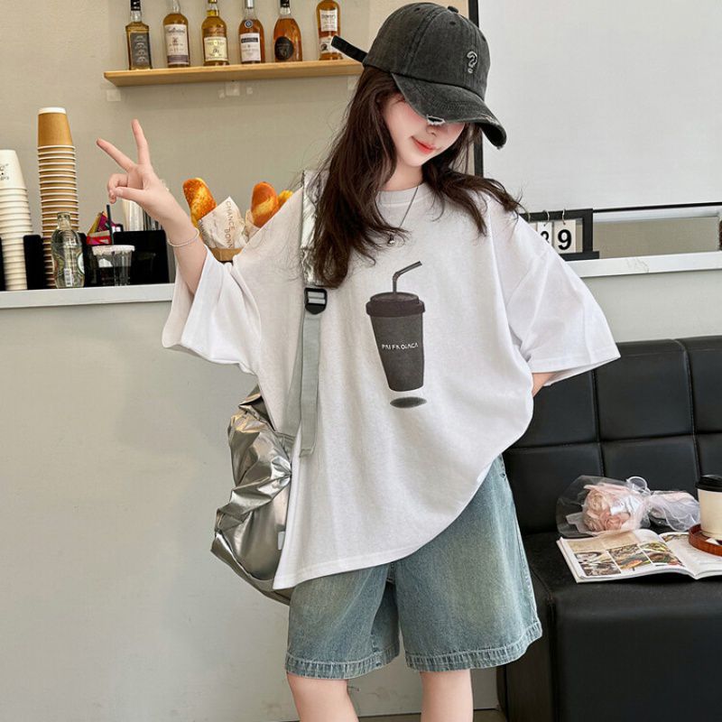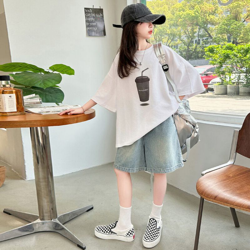 여아 여름 반팔 반바지 정장 2025 새로운 스타일 아동용 한국식 루즈 캐주얼 투피스 세트 중대형 어린이용스토어 가기