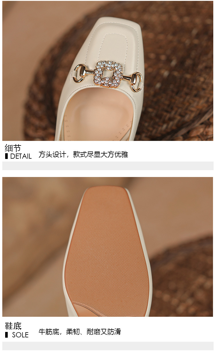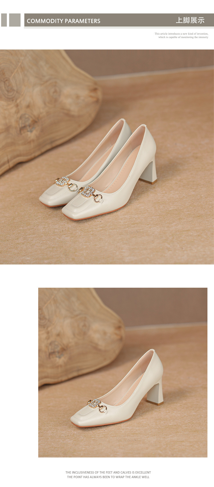 메리 제인 굵은 뒤꿈치 신발 여성 2024 년 봄 새 중간 뒤꿈치 신발 얕은 입 광장 머리 하이힐 여성 대외 무역 플러스 사이즈 신발