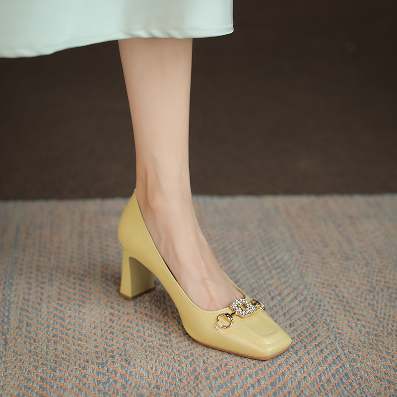 메리 제인 굵은 뒤꿈치 신발 여성 2024 년 봄 새 중간 뒤꿈치 신발 얕은 입 광장 머리 하이힐 여성 대외 무역 플러스 사이즈 신발스토어 가기